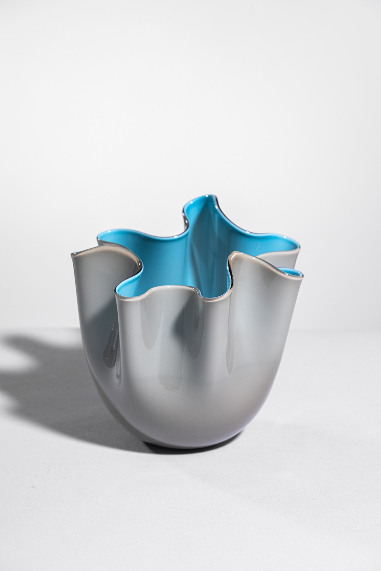 Vetro soffiato incamiciato azzurro e grigio.
