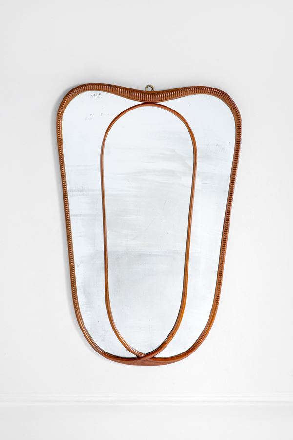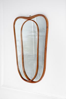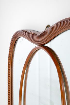 Legno massello scolpito e curvato, vetro specchiato.