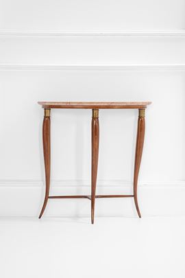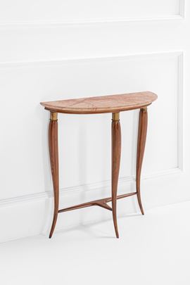 Legno massello curvato e sagomato, ottone lucido, marmo rosa.