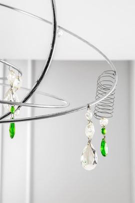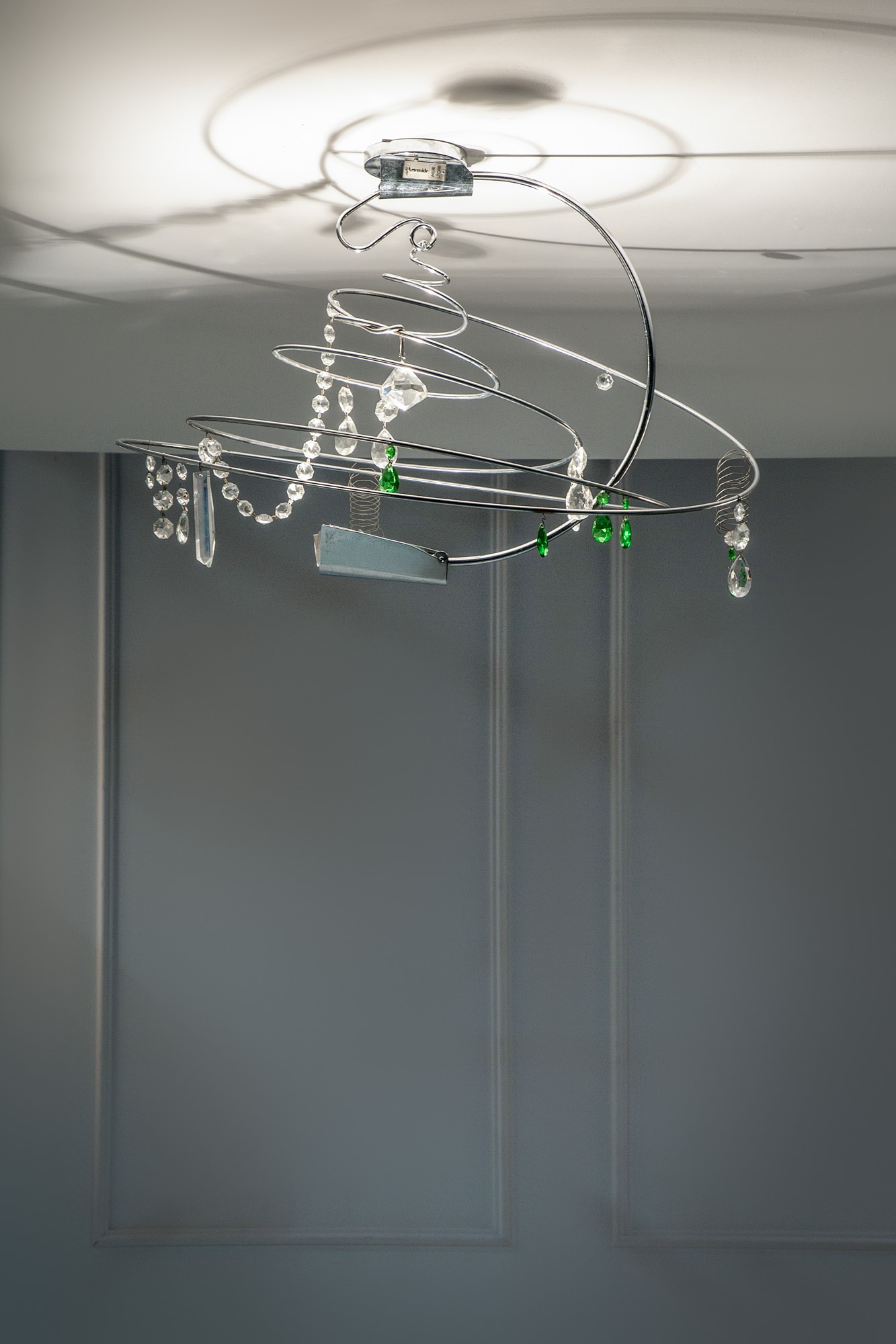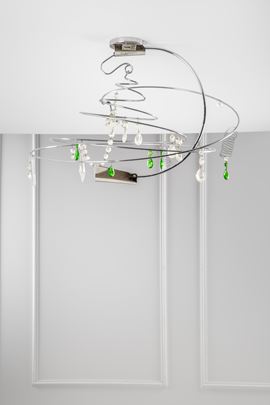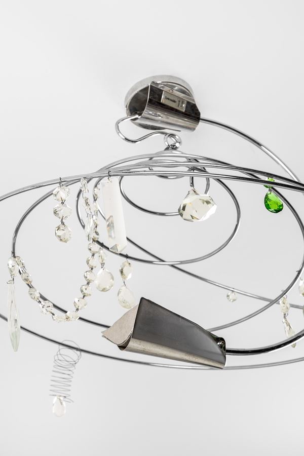 Profilato metallico cromato, elementi in vetro colorato.