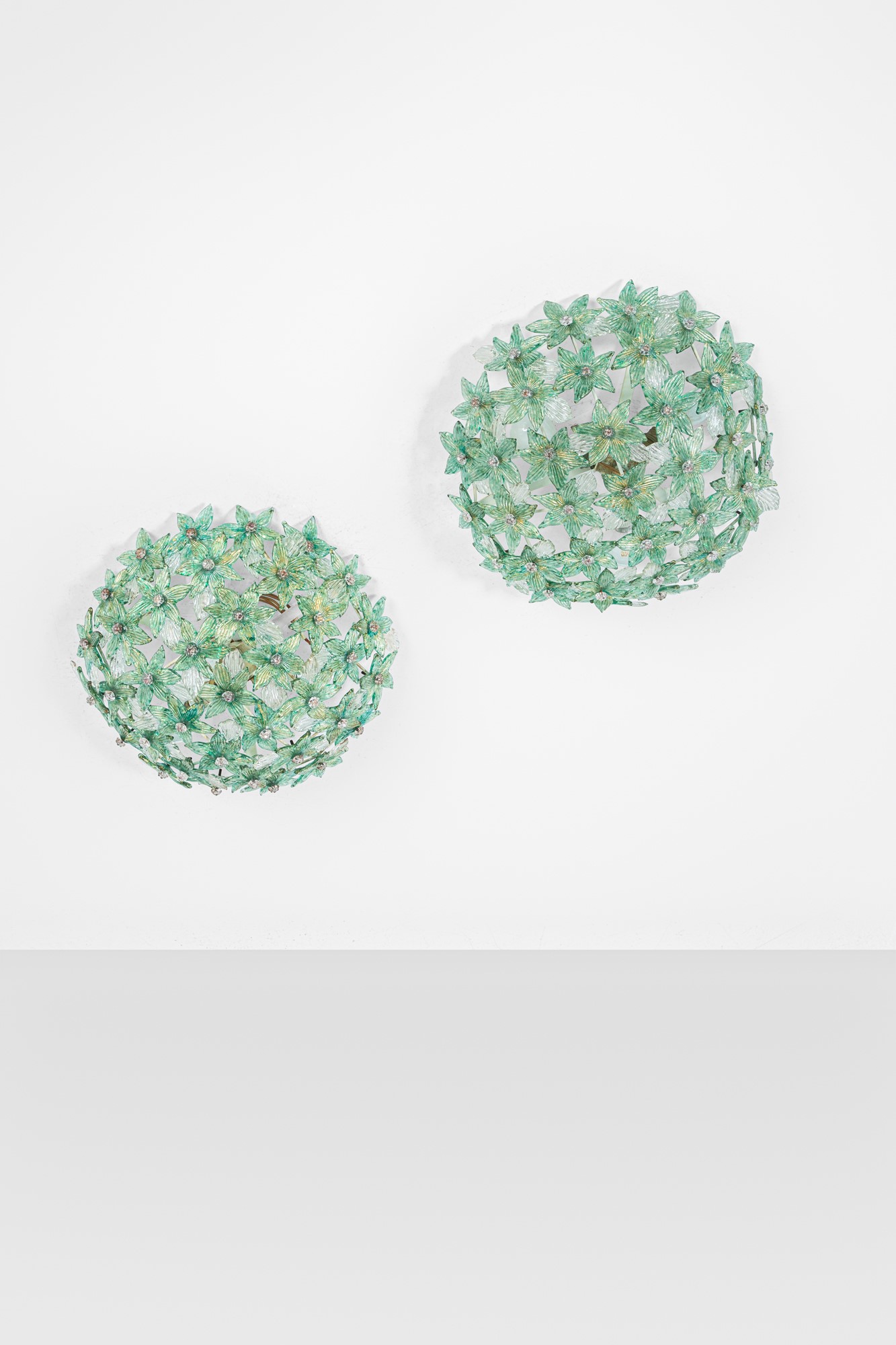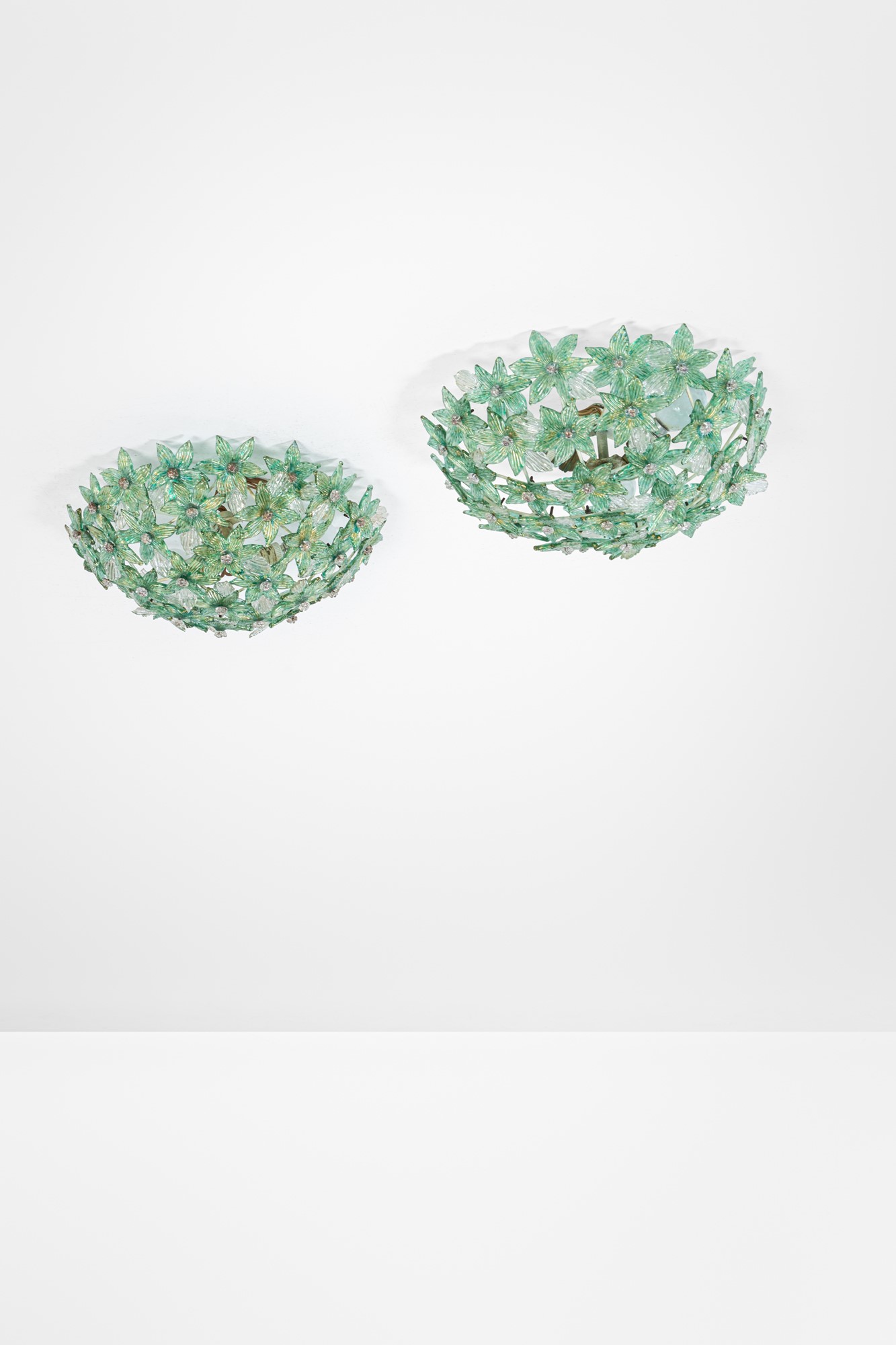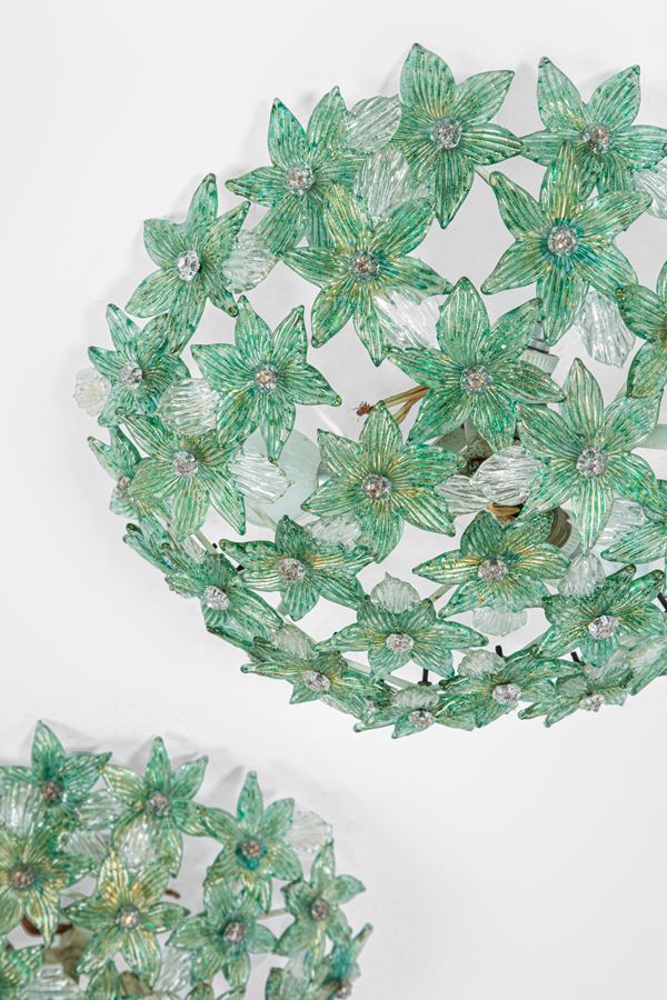 Vetro di Murano colorato con inclusioni d'oro, metallo verniciato.