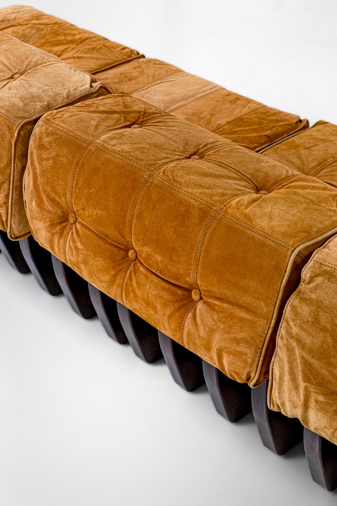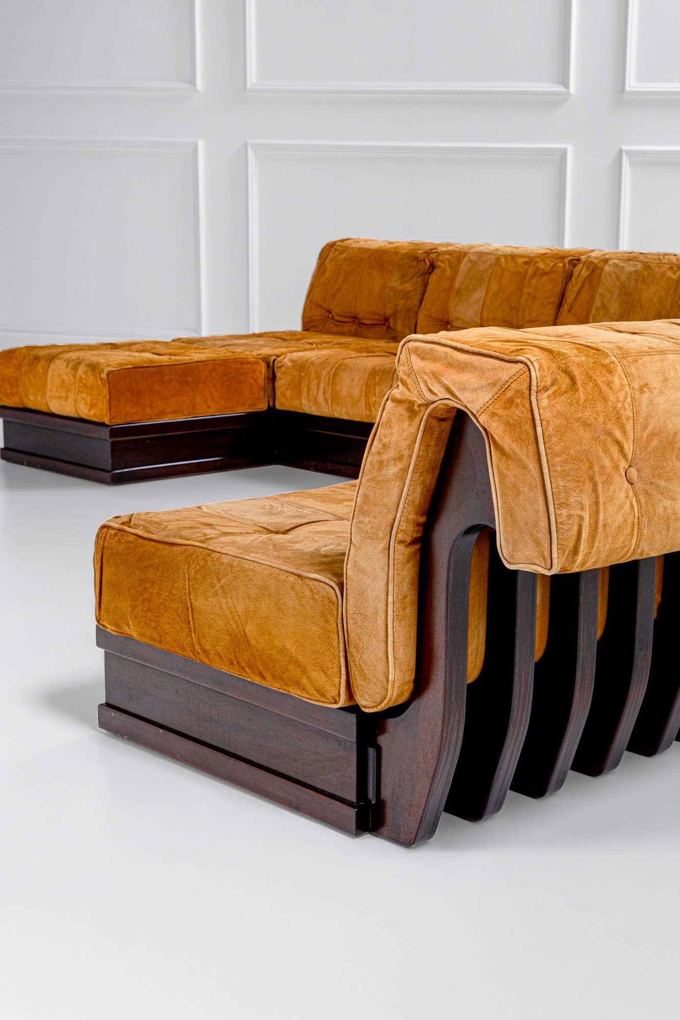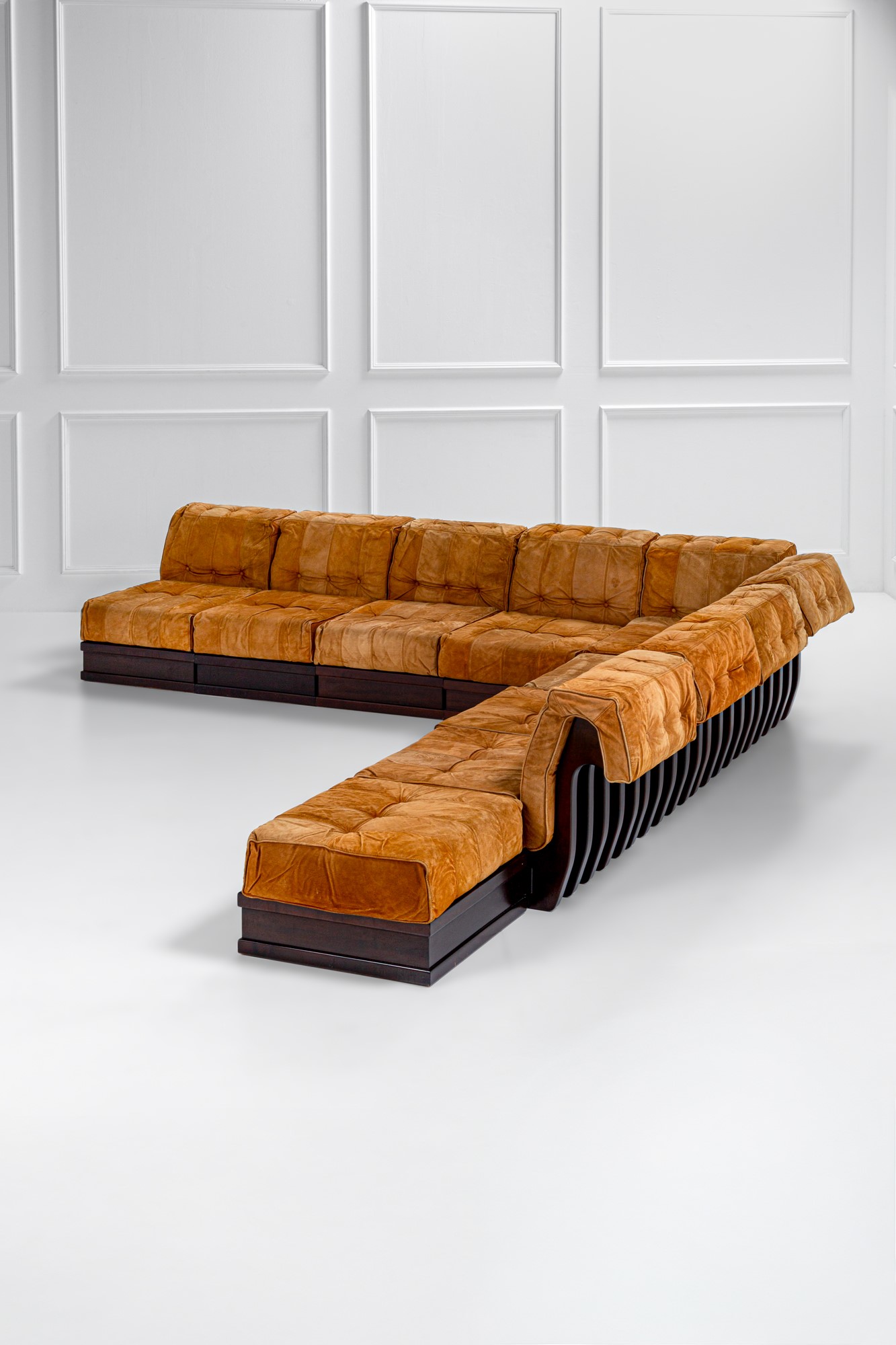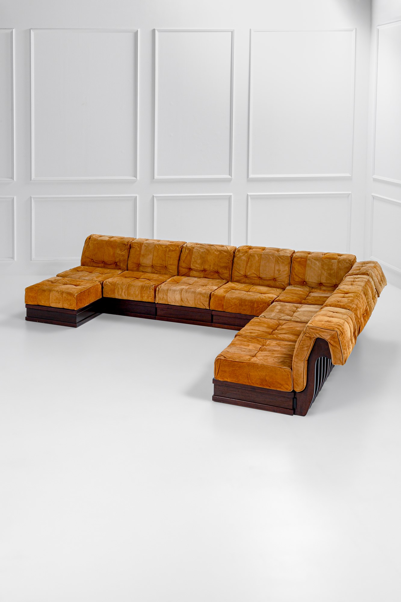 Otto moduli con schienale di cui uno angolare e un modulo poggiapiedi