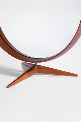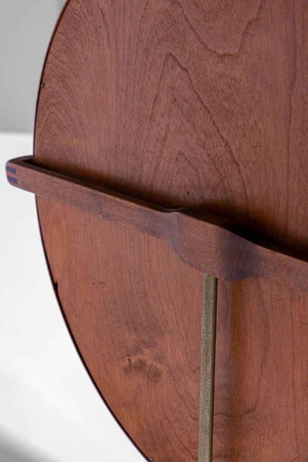 Legno massello curvato, metallo, vetro specchiato.