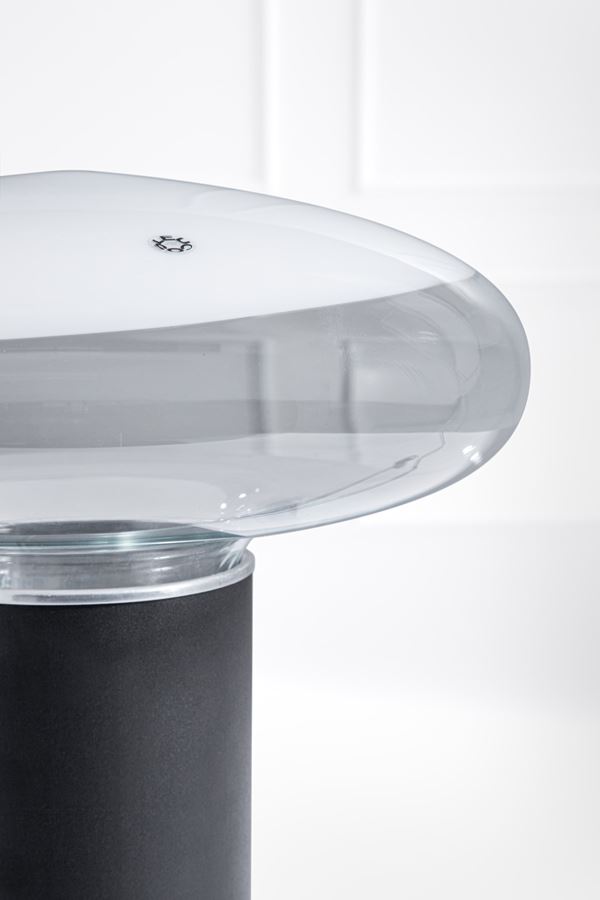 Metallo verniciato, vetro trasparente e lattimo.