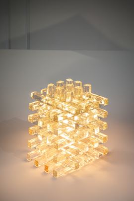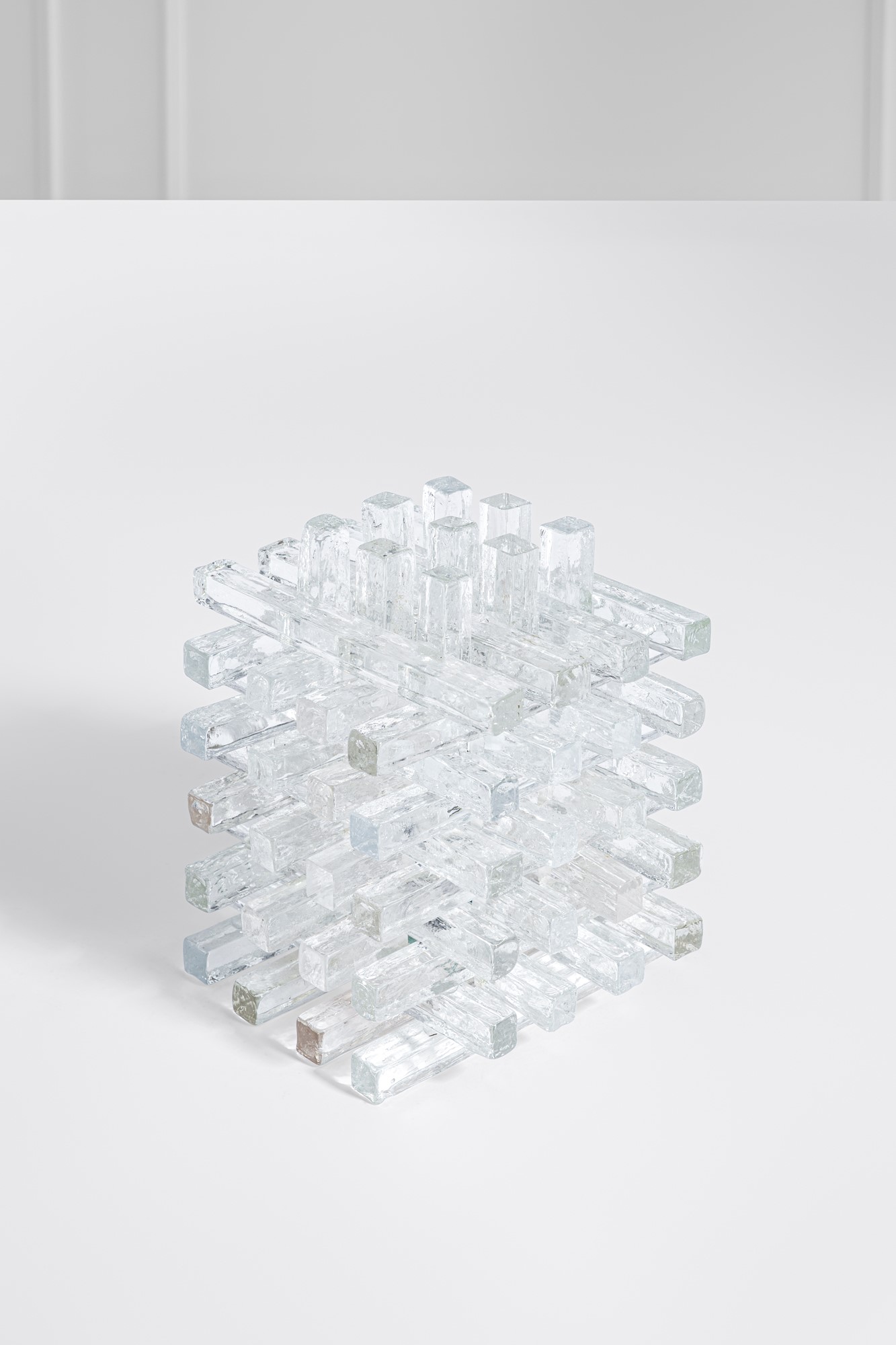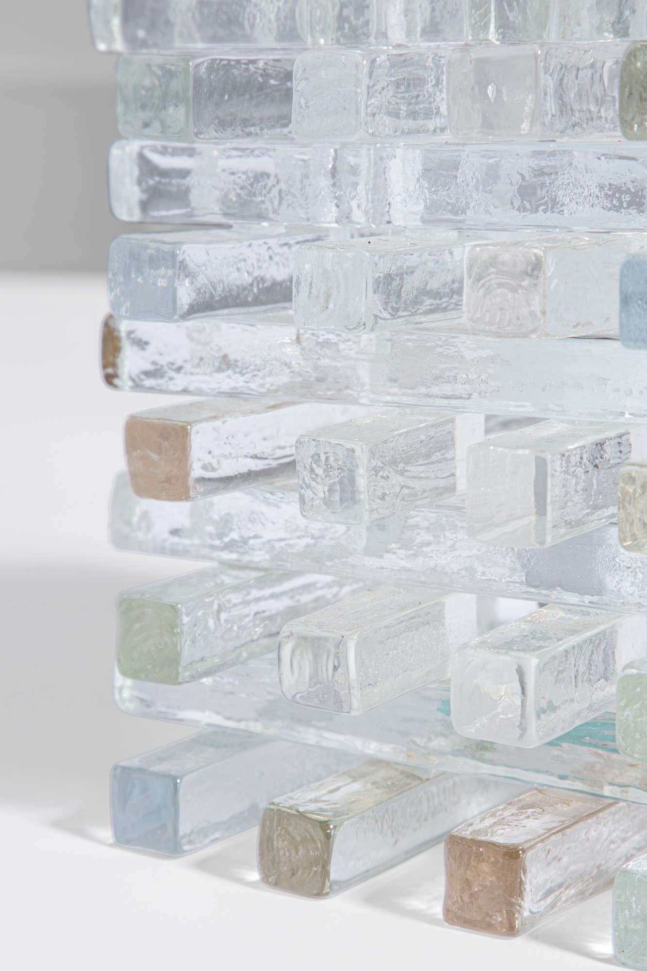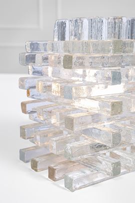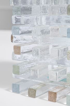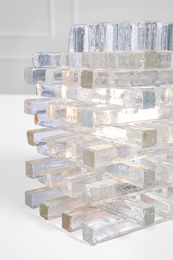 Elementi in vetro di forte spessore assemblati ad incastro.