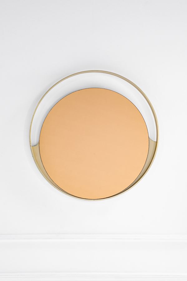 Legno laccato, vetro colorato specchiato.