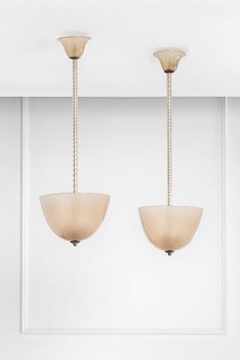 Due lampade a sospensione in vetro di Murano