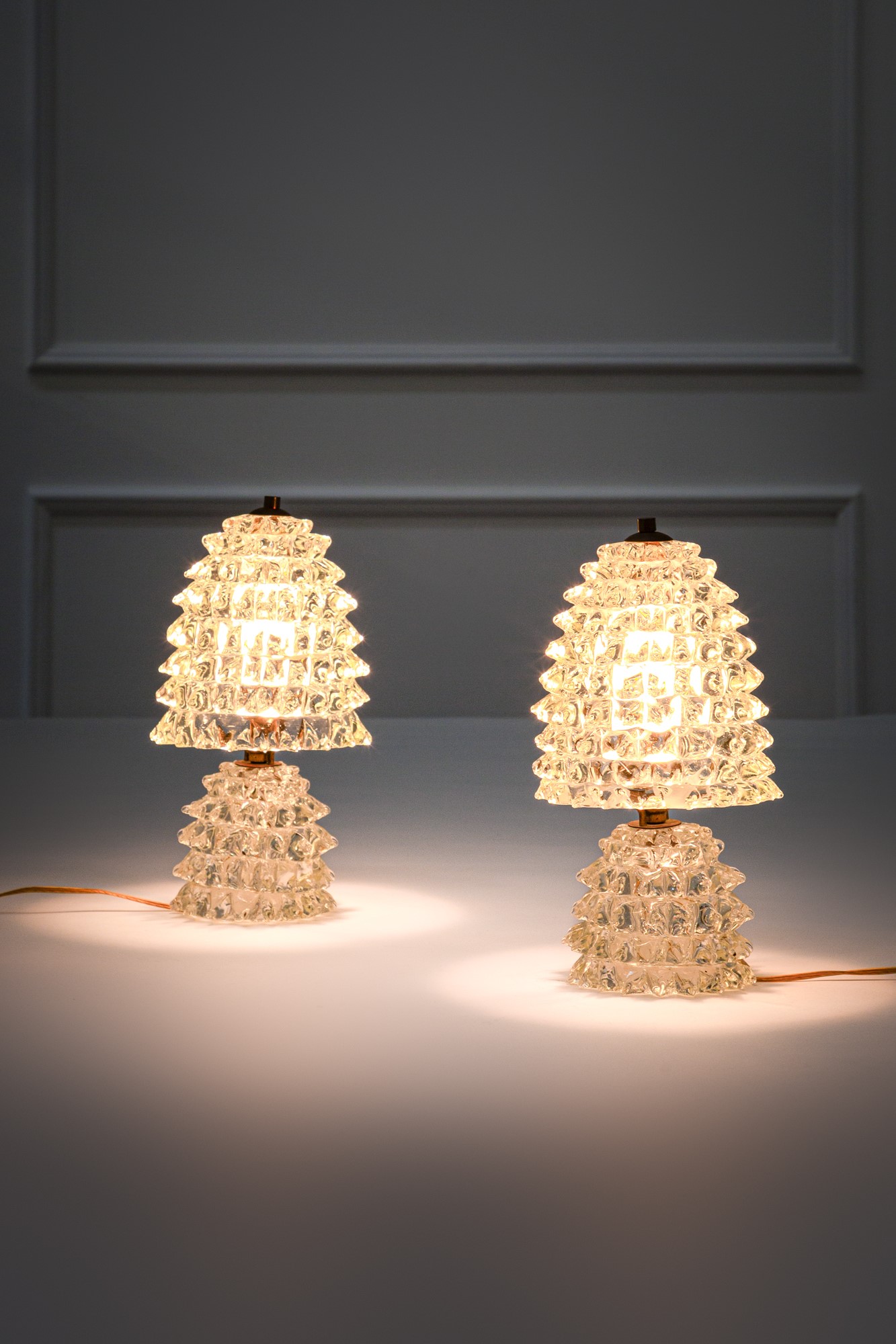 Due lampade tavolo in vetro rostrato