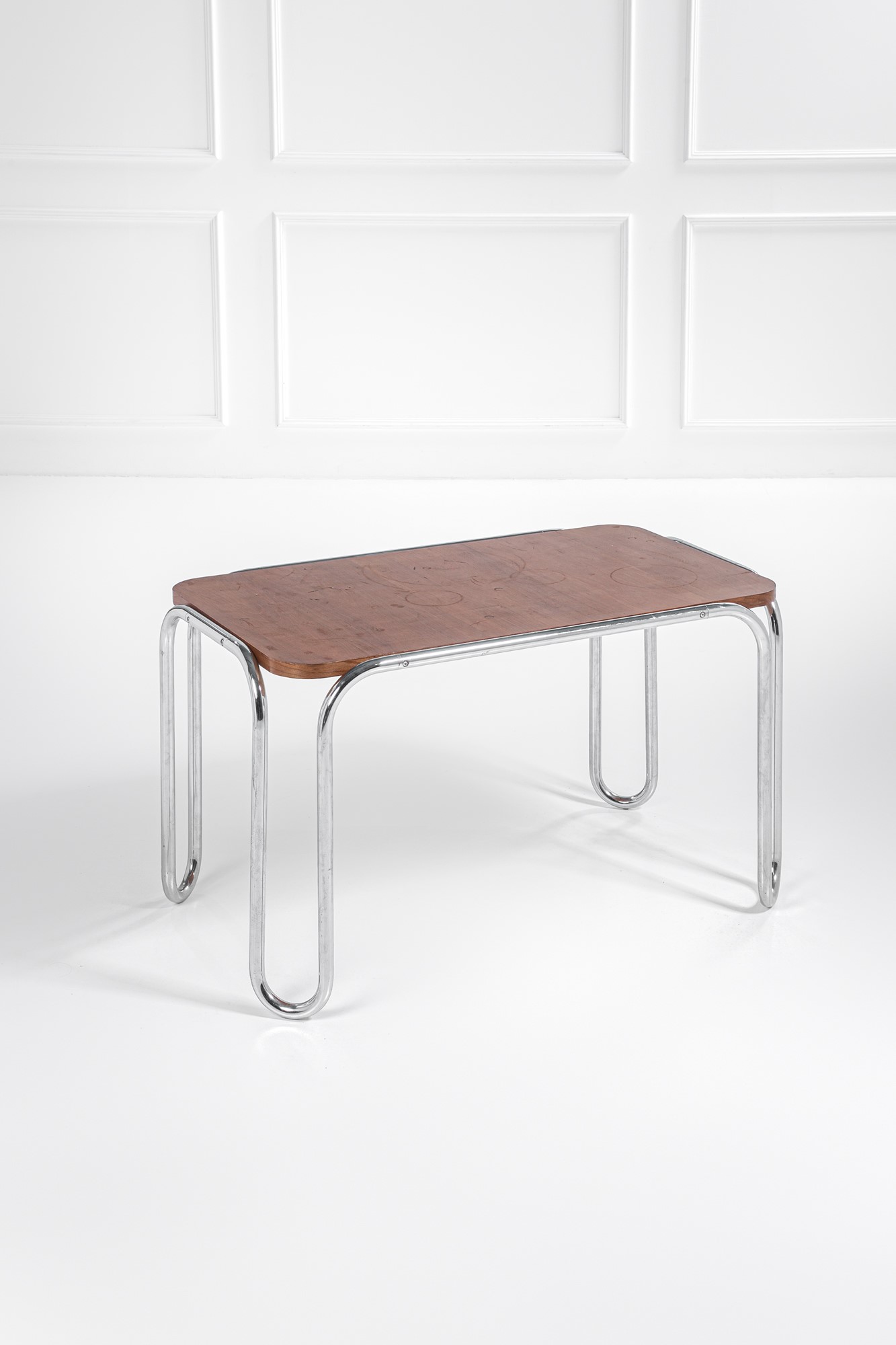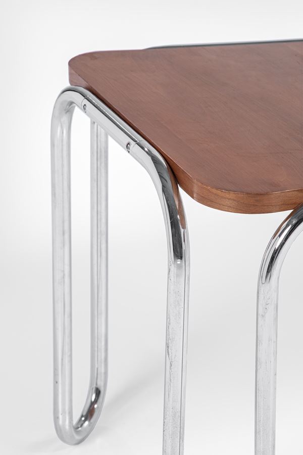 Tubolare metallico curvato, legno impiallacciato.