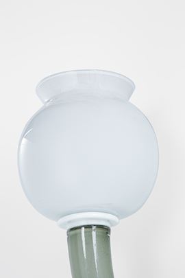 Vetro colorato, vetro opalino, ottone.