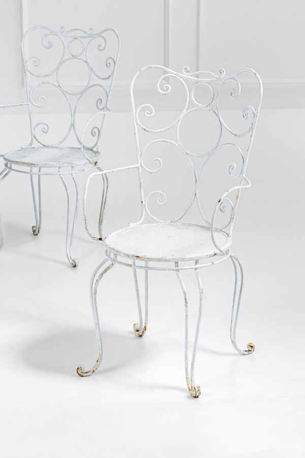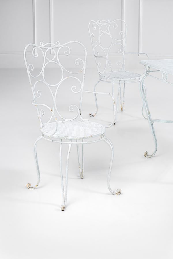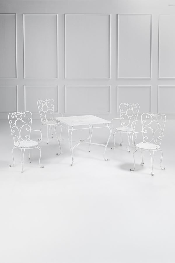 Set da giardino composto da tavolo e quattro sedie con braccioli