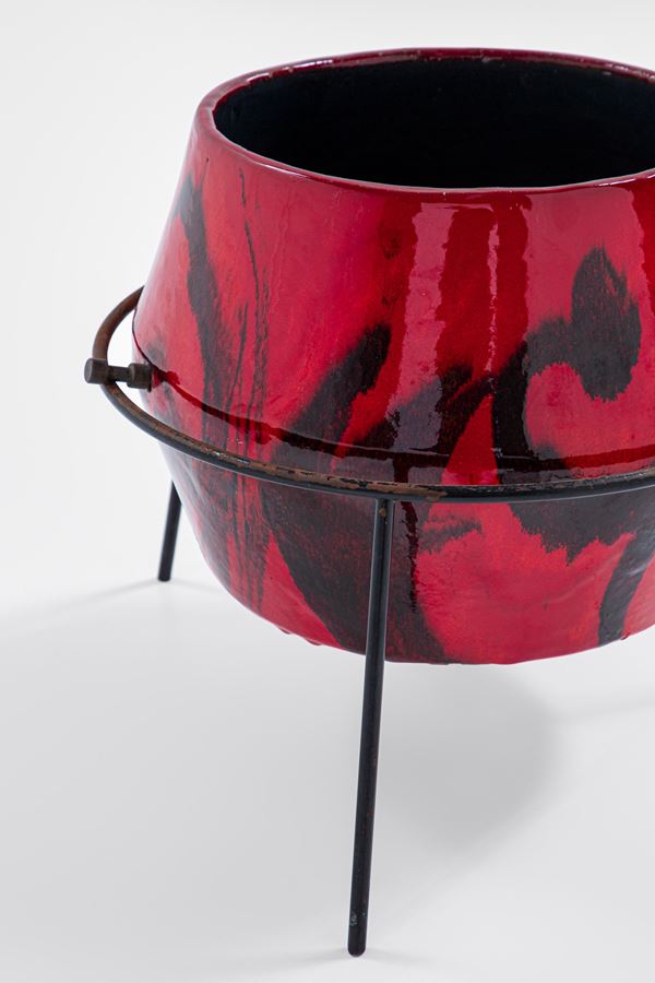 Ceramica smaltata, tondino metallico verniciato.