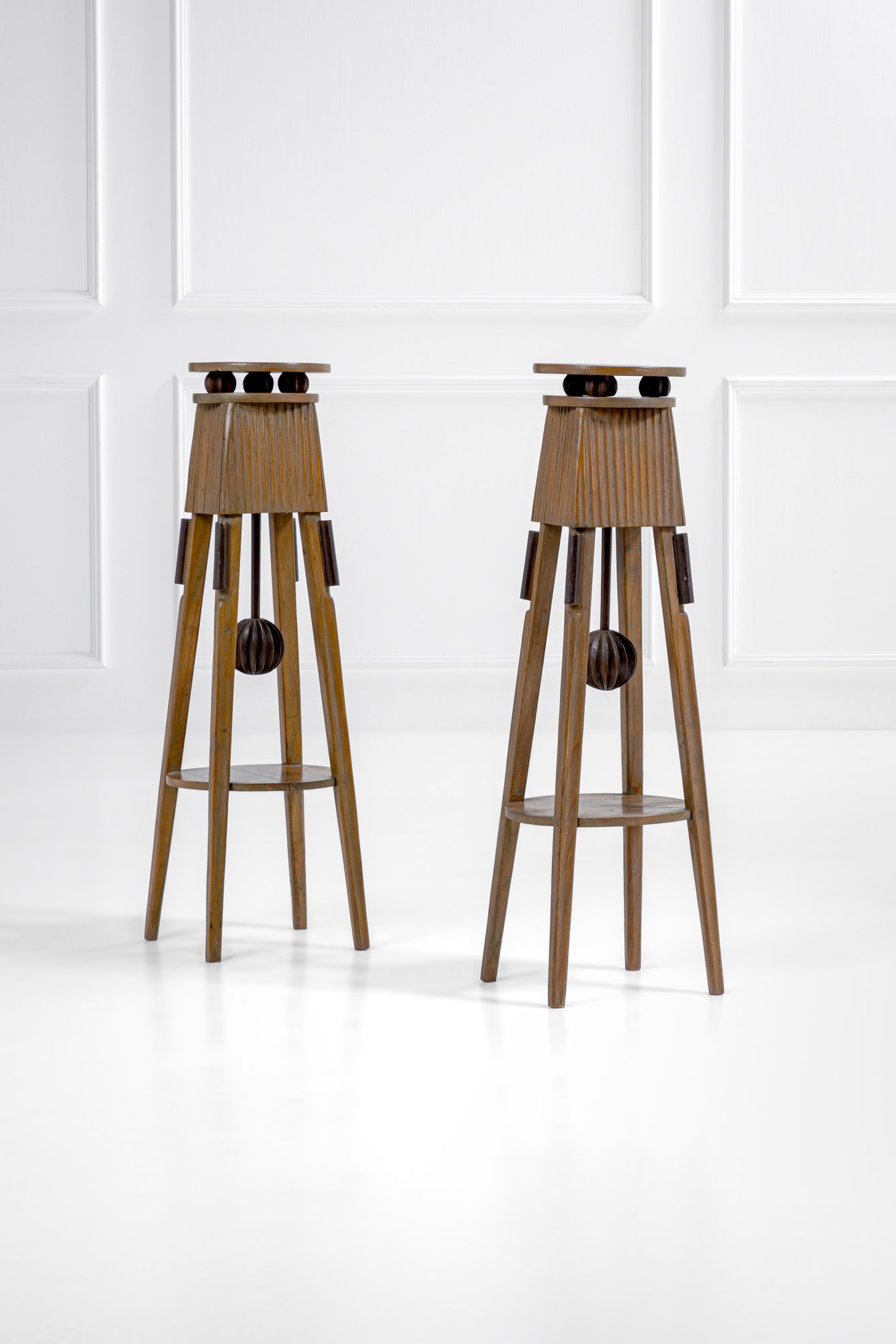 Elementi in legno massello naturale e tinto scolpiti e sagomati.