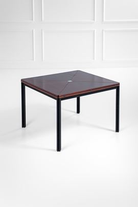 Legno impiallacciato, metallo verniciato.