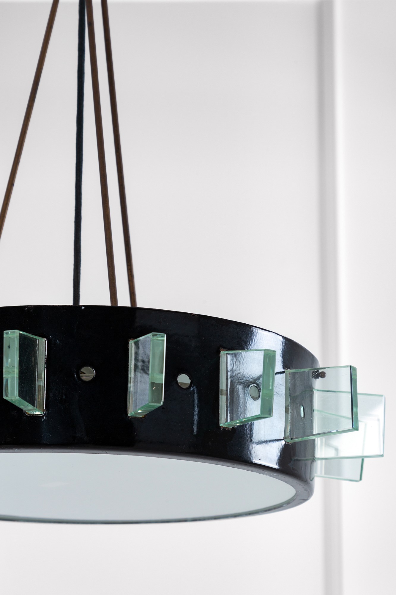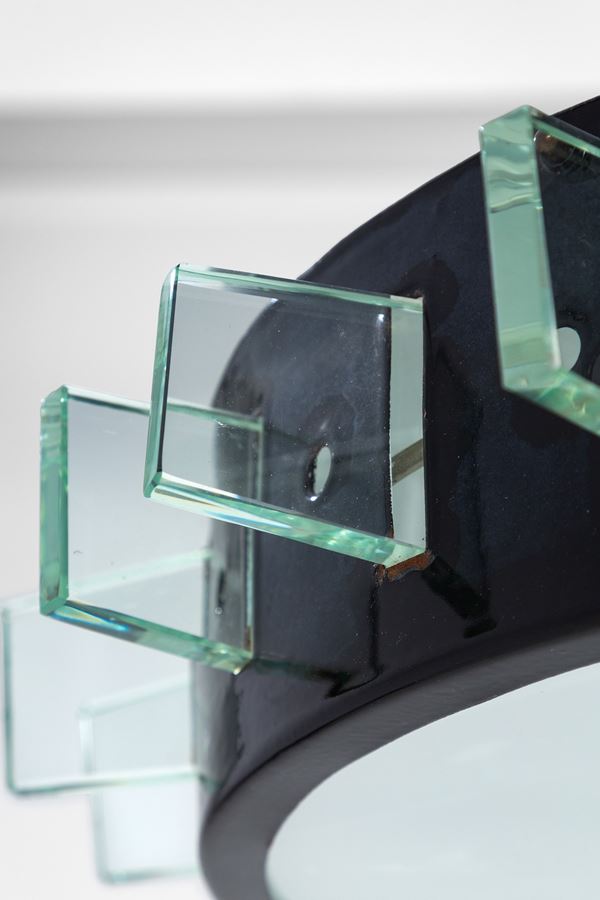 Metallo verniciato, elementi in vetro molato di forte spessore.