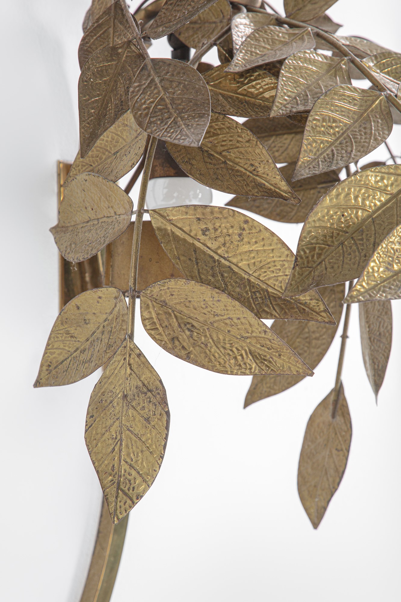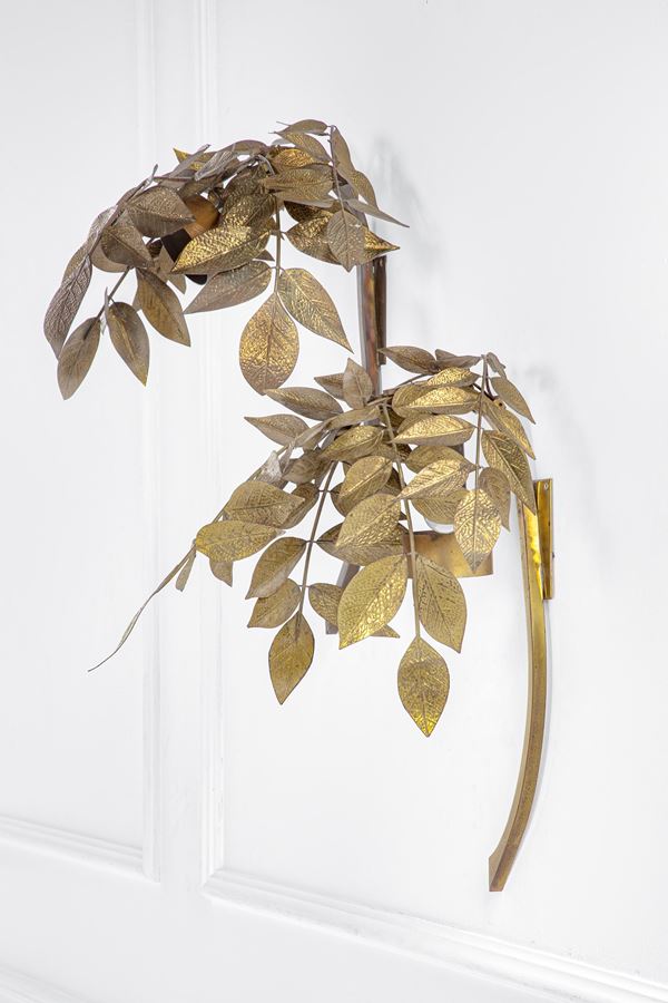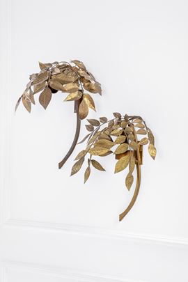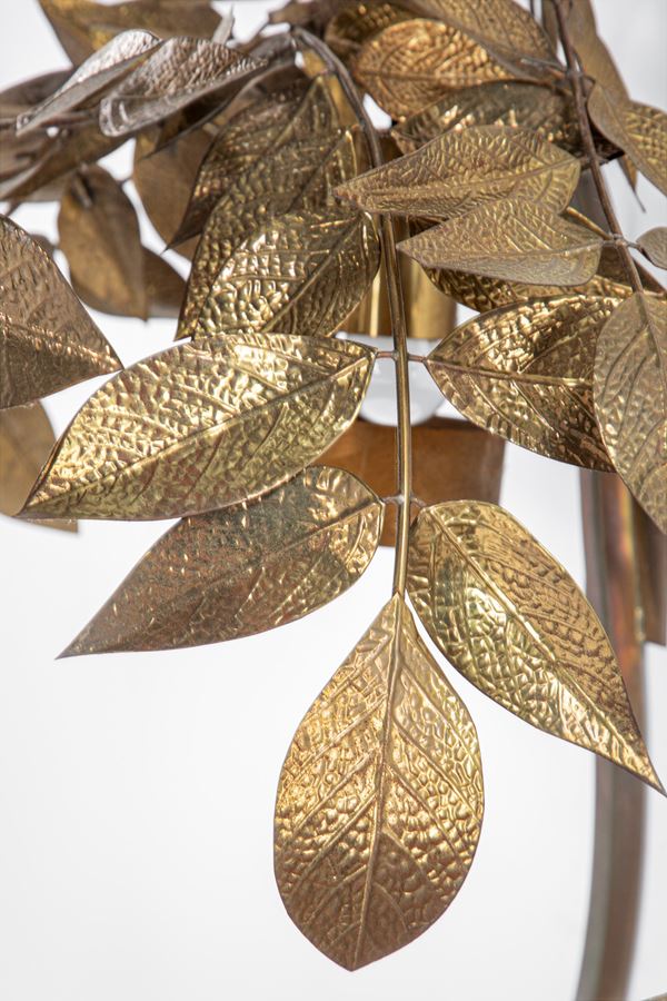 Ottone dorato sbalzato a guisa di ramo con foglie.