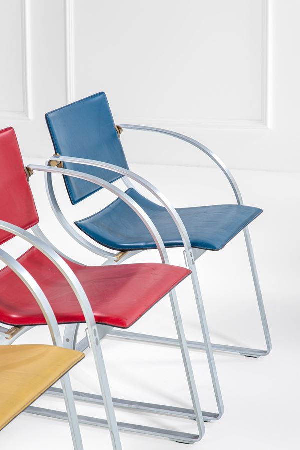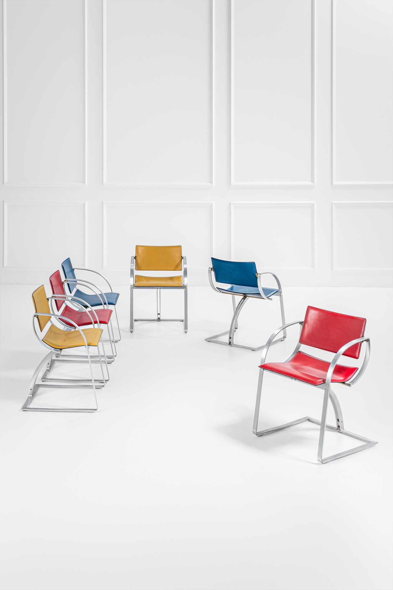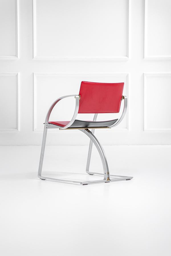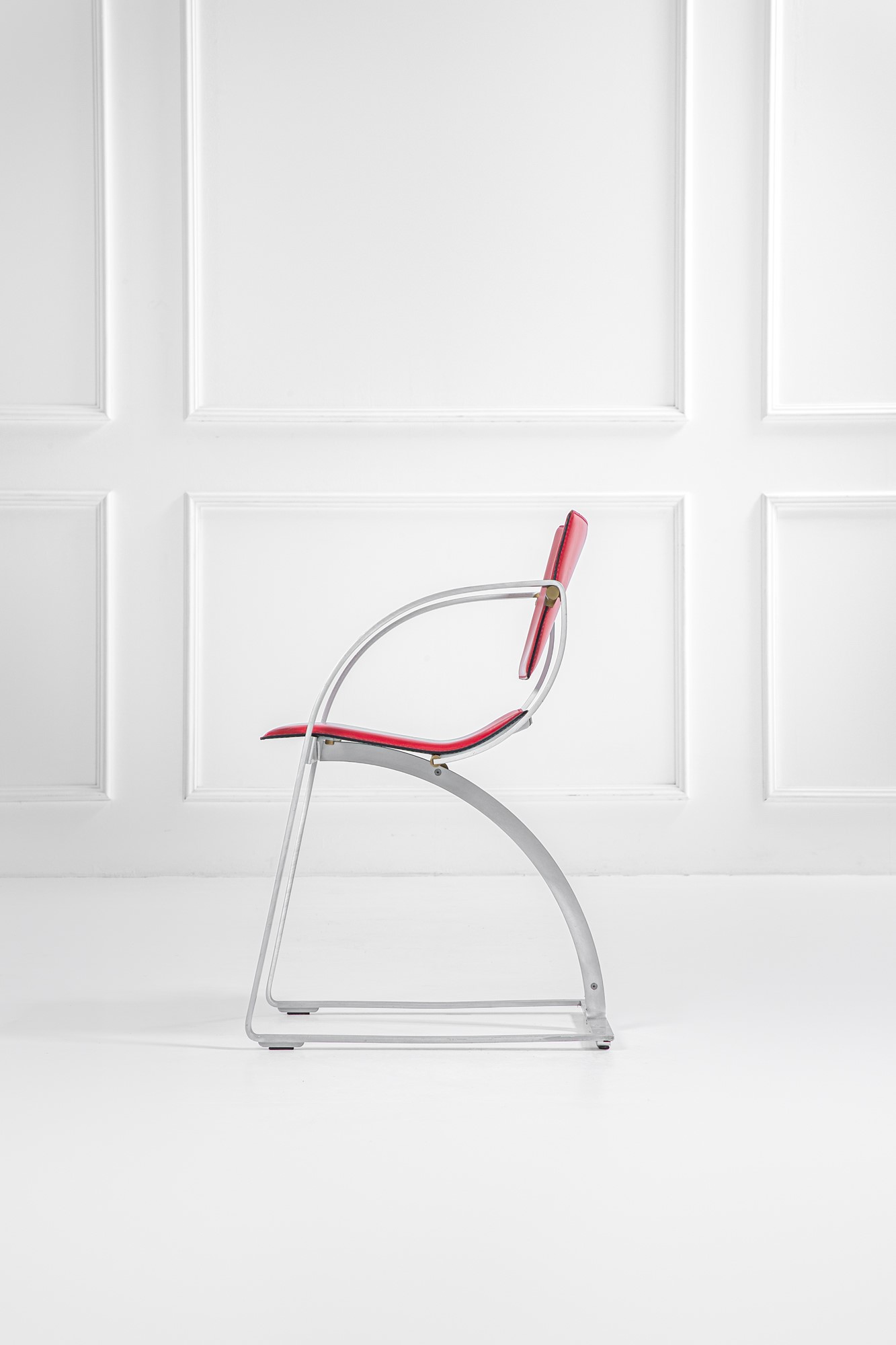 Acciaio curvato, ottone, pelle.