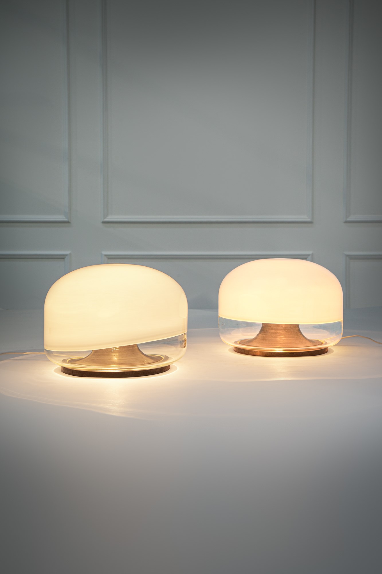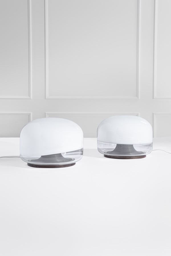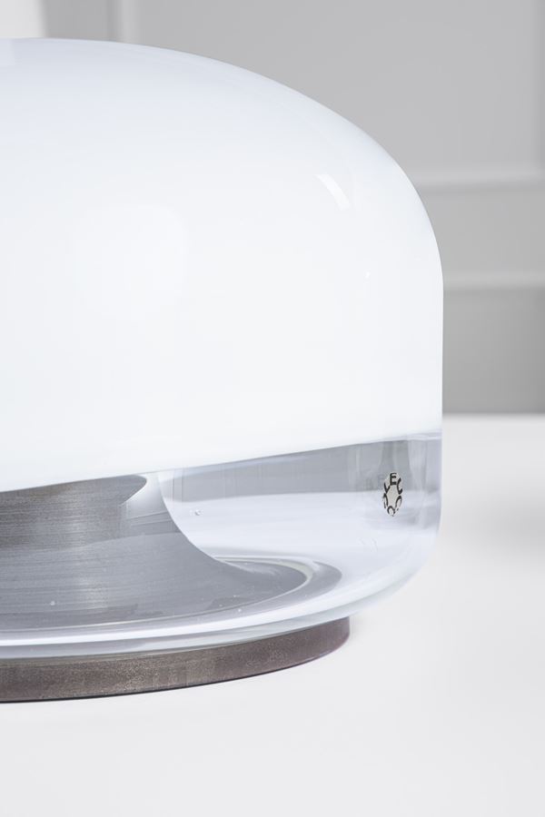 Metallo nichelato, vetro bicolore trasparente e lattimo.