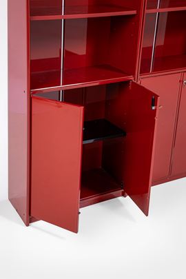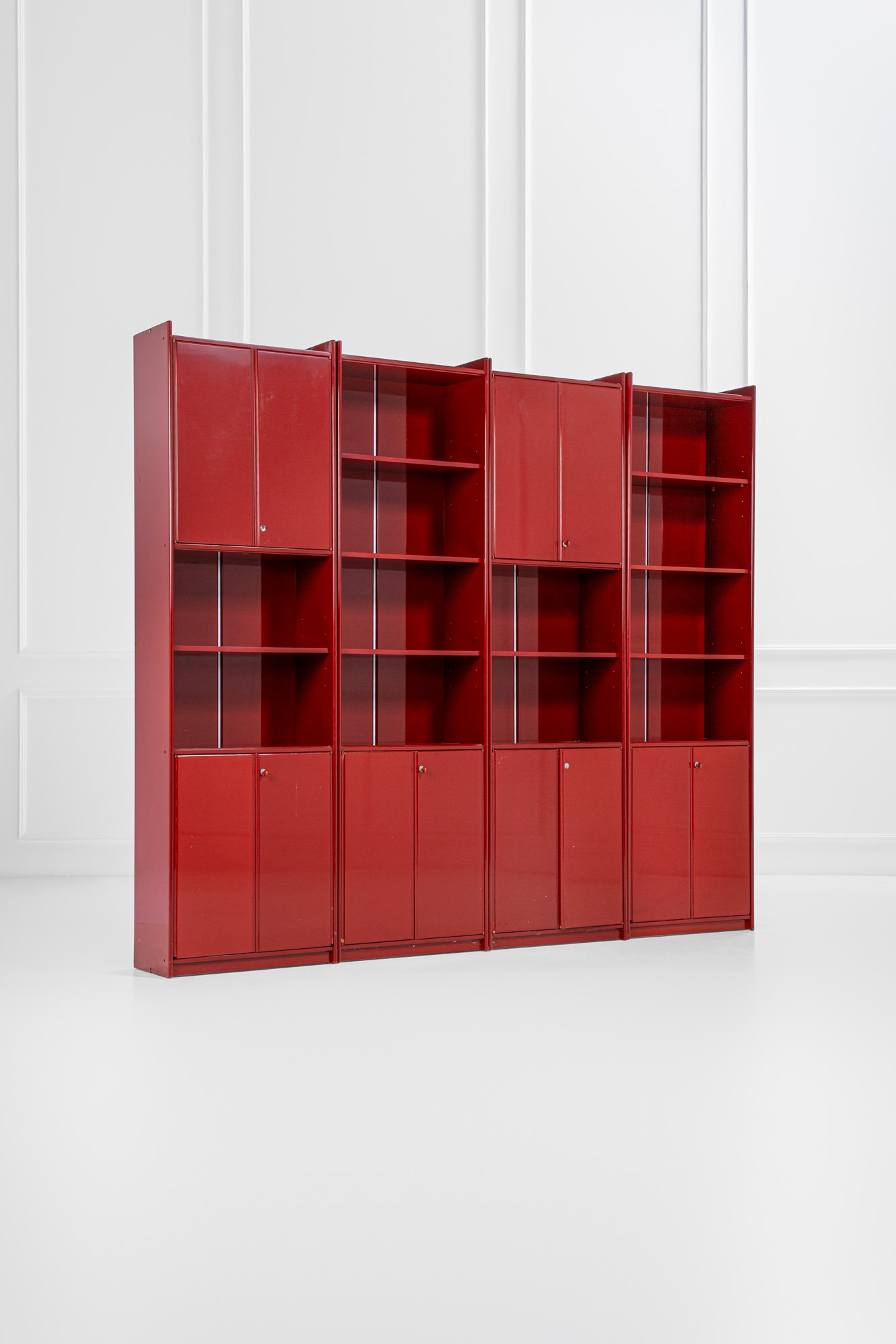 Quattro moduli con vani a giorno e vani chiusi da ante.
