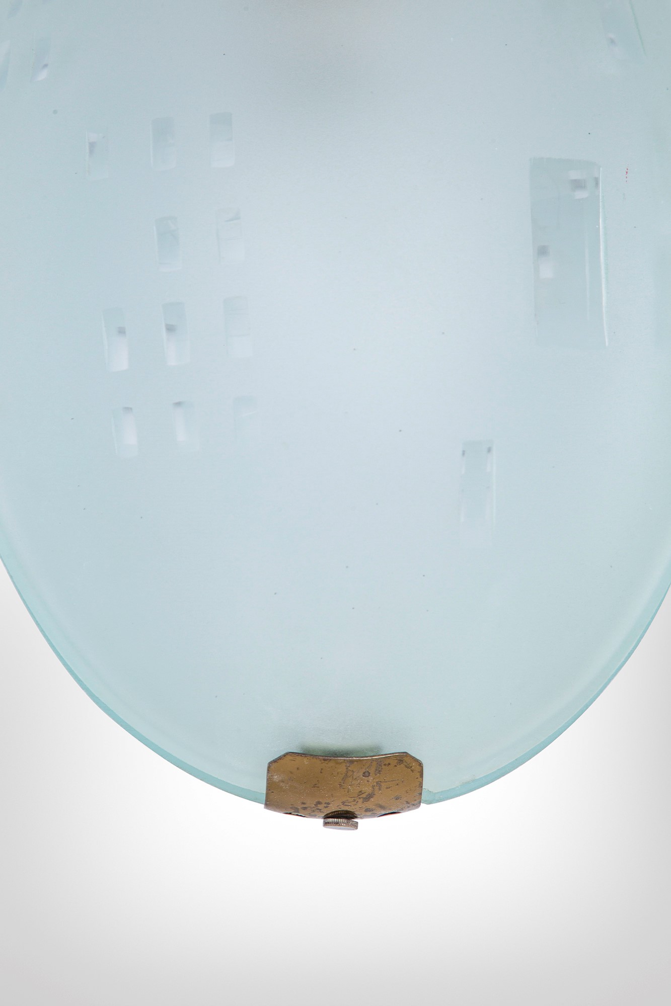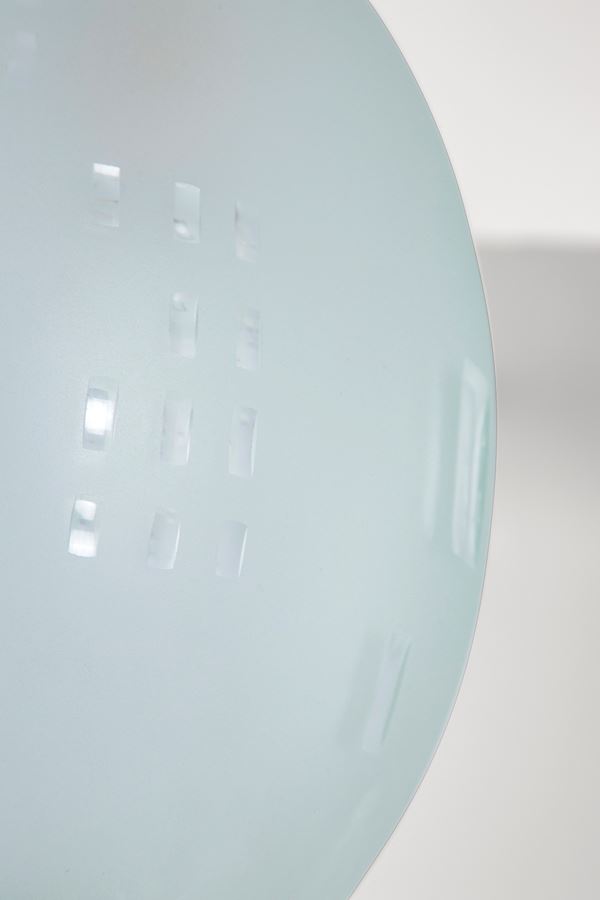 Vetro curvato satinato molato con incisioni lucide.