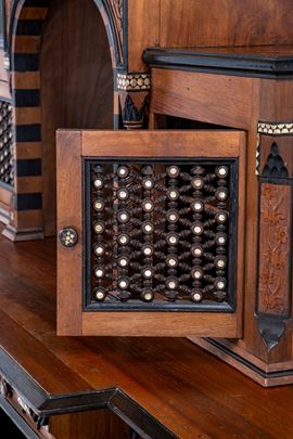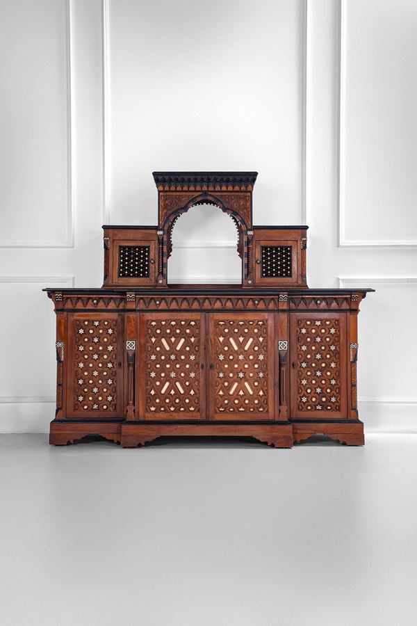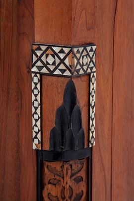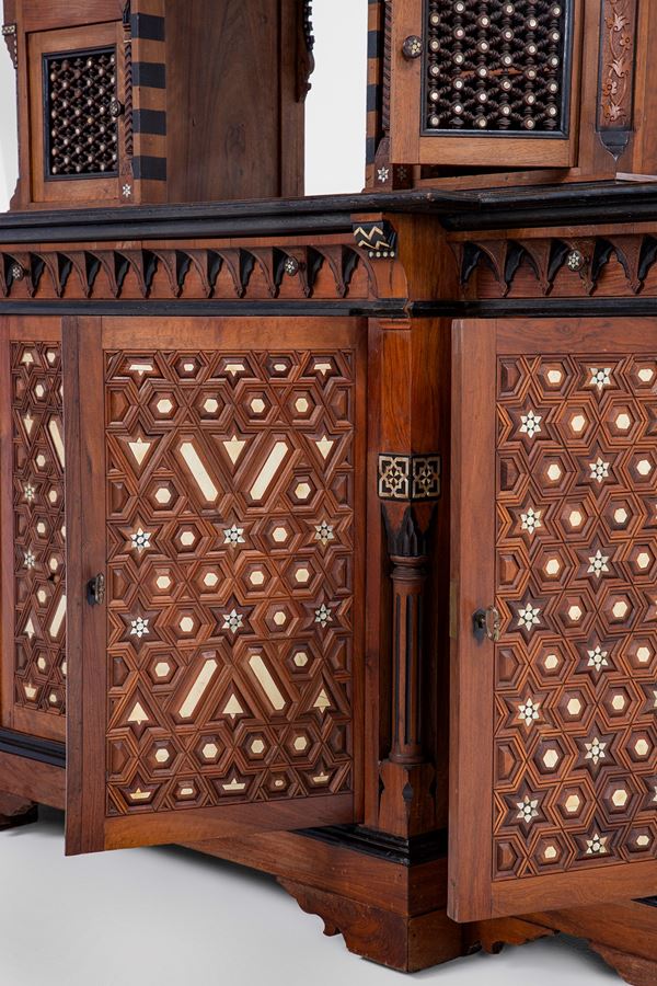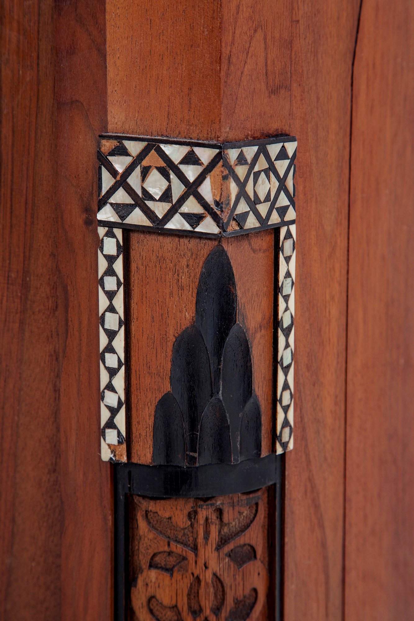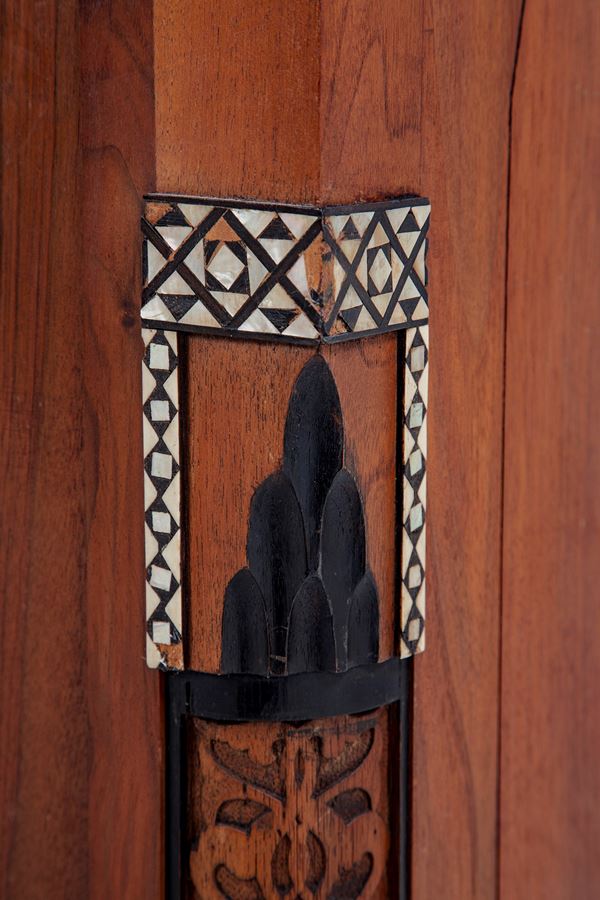 Legno scopito e intarsiato in madreperla, legno ebanizzato.