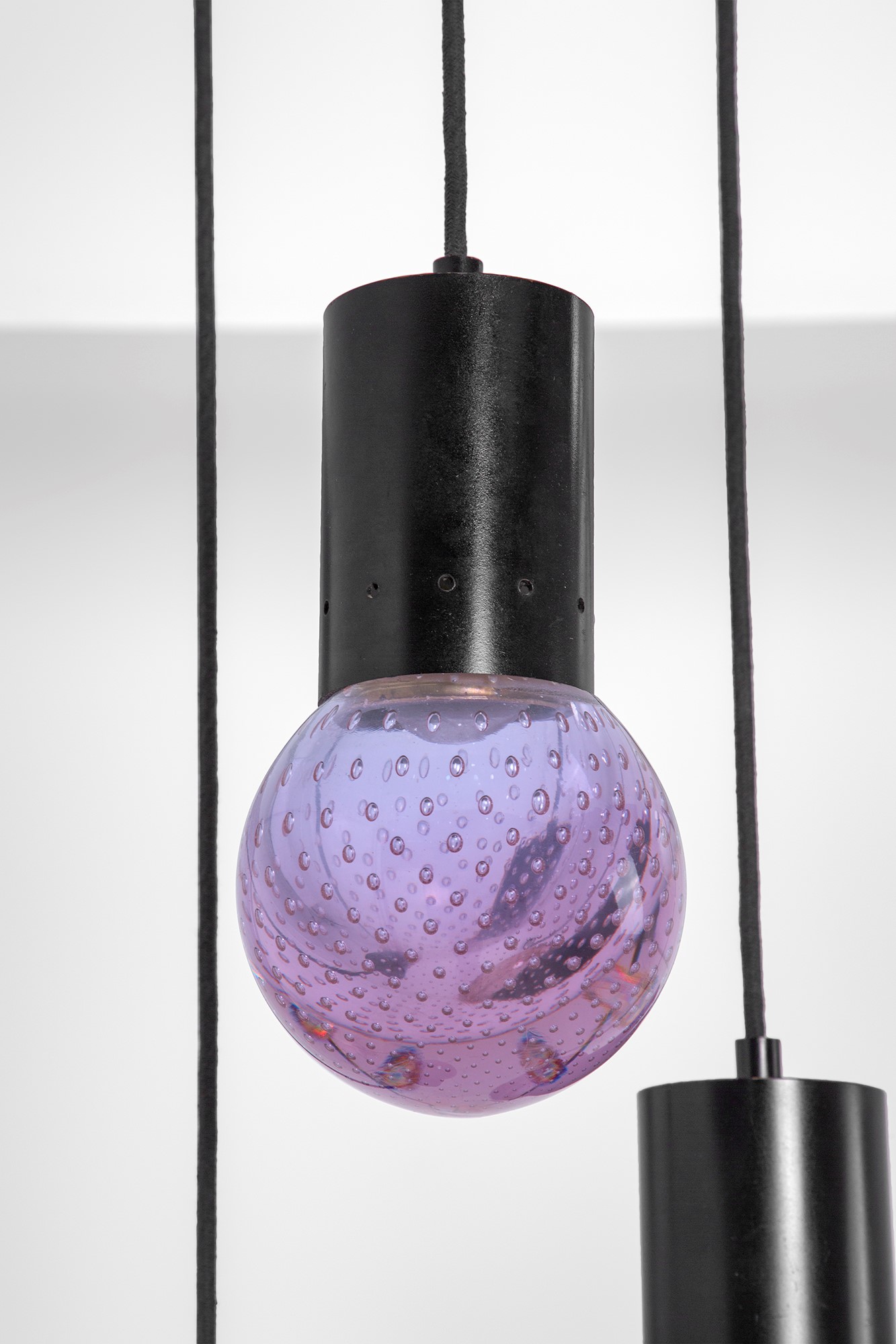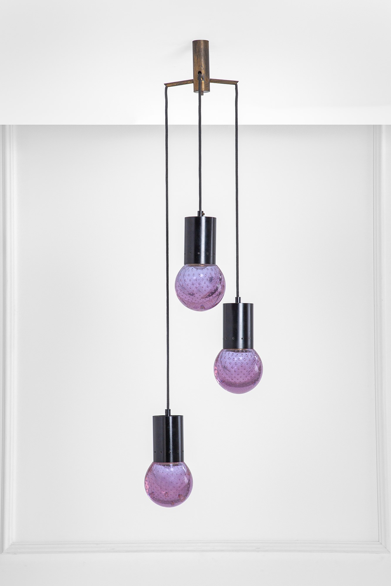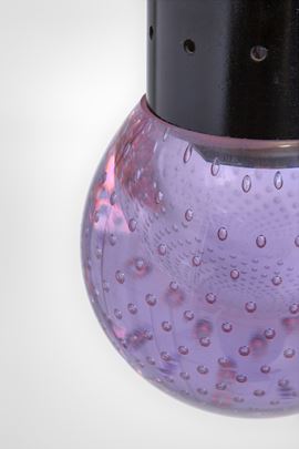 Metallo verniciato, vetro ametista a bollicine di Seguso.