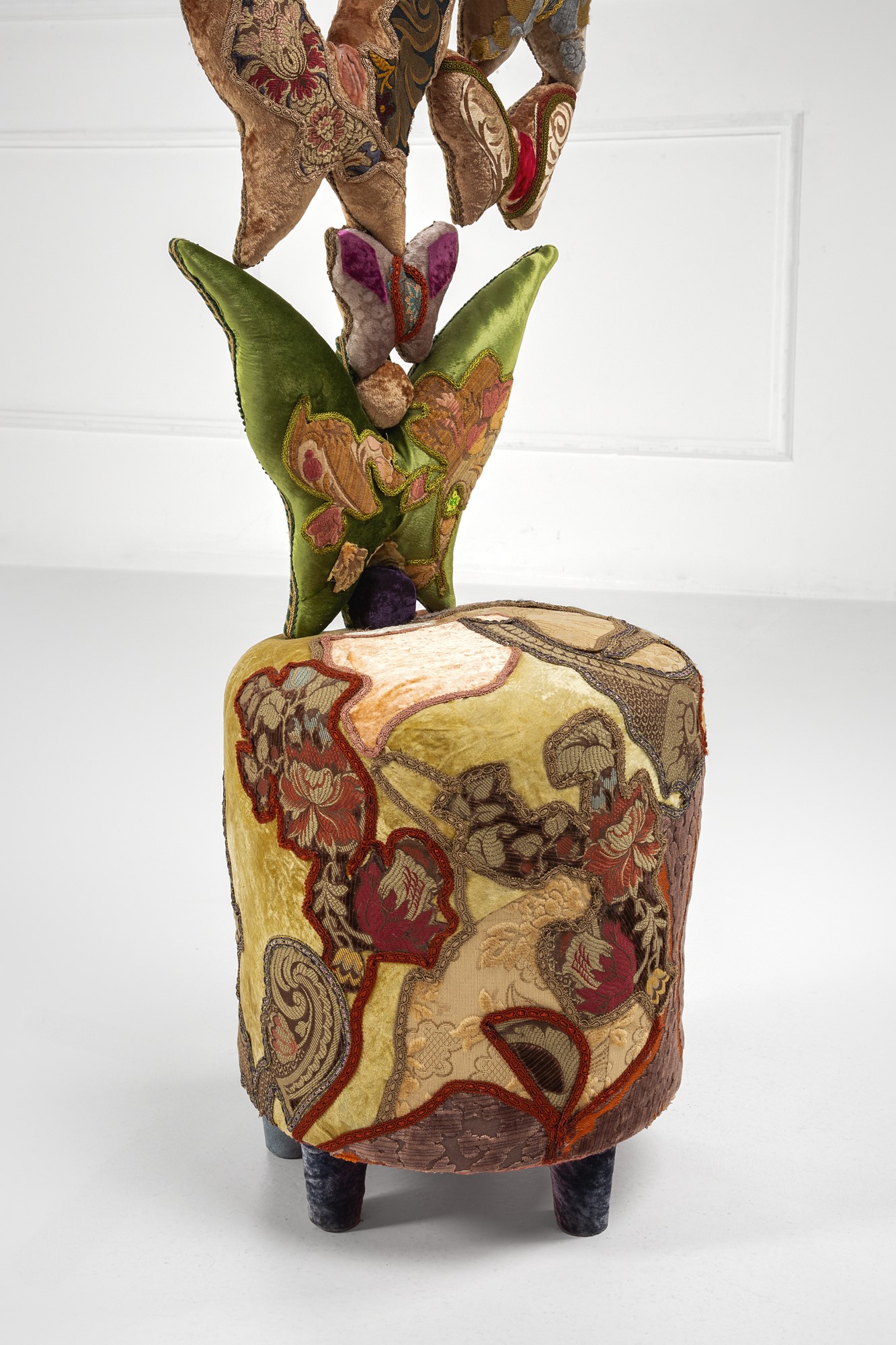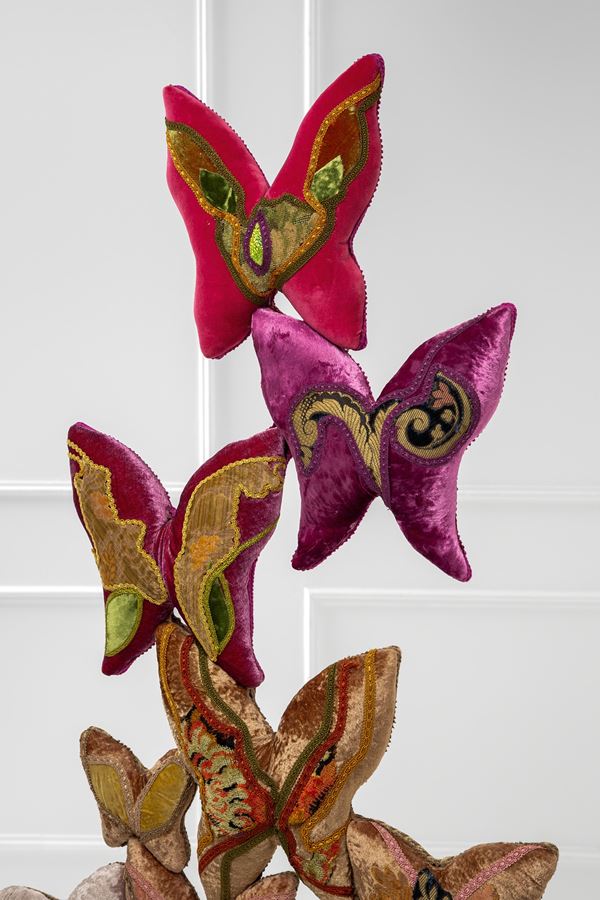 Velluti in seta Pontoglio; ritagli decorazioni Pierre Frey, Etro, Bevilacqua; passamanerie oro, seta e cotone Irpa.