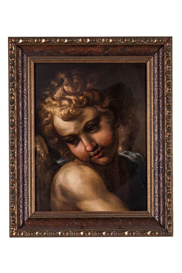Due dipinti, Teste di angeli, Pittore emiliano del XVII secolo