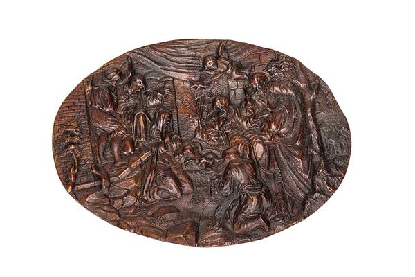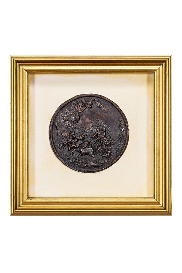 Due placche in bronzo raffiguranti l'Adorazione del Bambino e il Ratto delle Sabine.