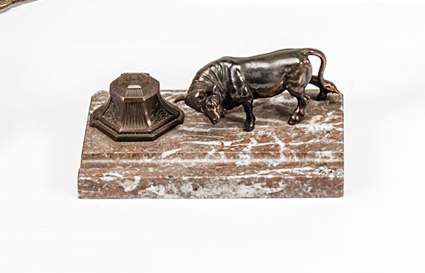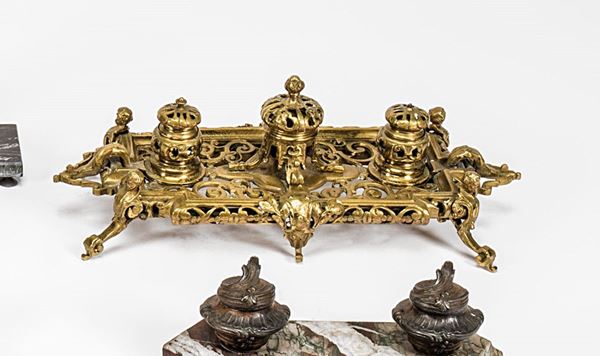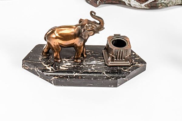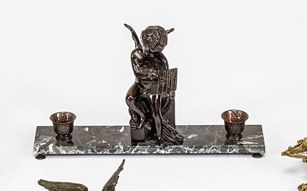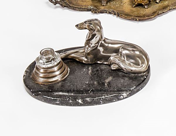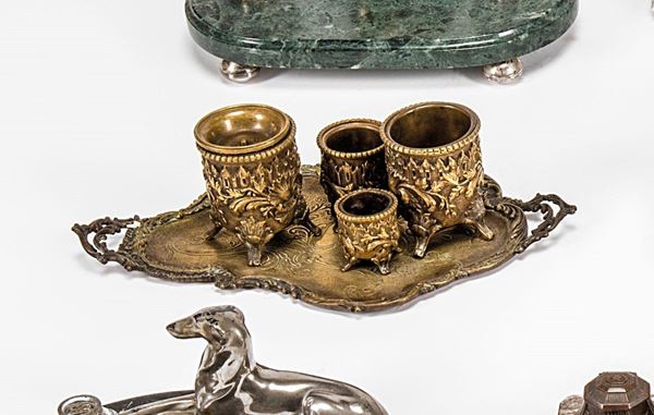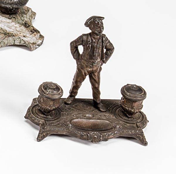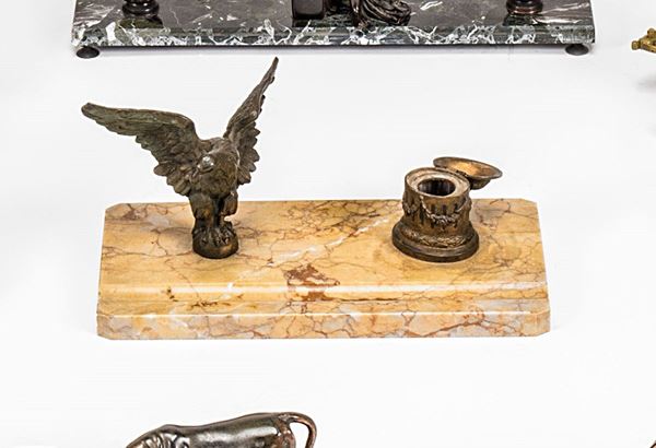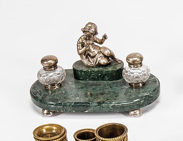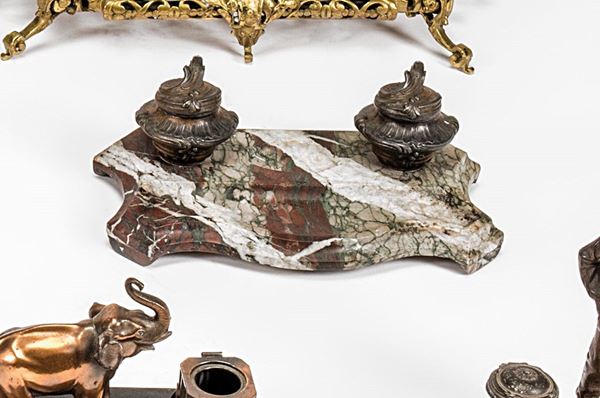 Lotto di dieci calamai in materiali e soggetti diversi.