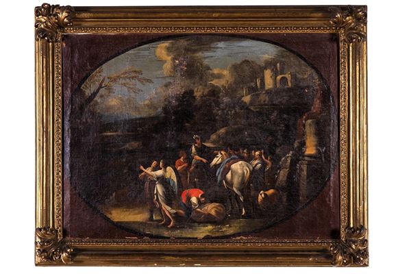 Pittore del XVII secolo, due dipinti di scene bibliche