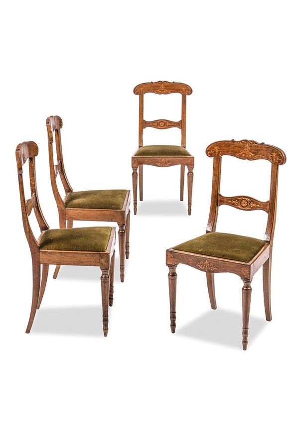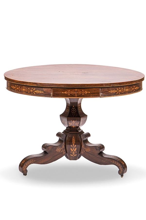 Tavolo rotondo con quattro sedie, XIX secolo.
