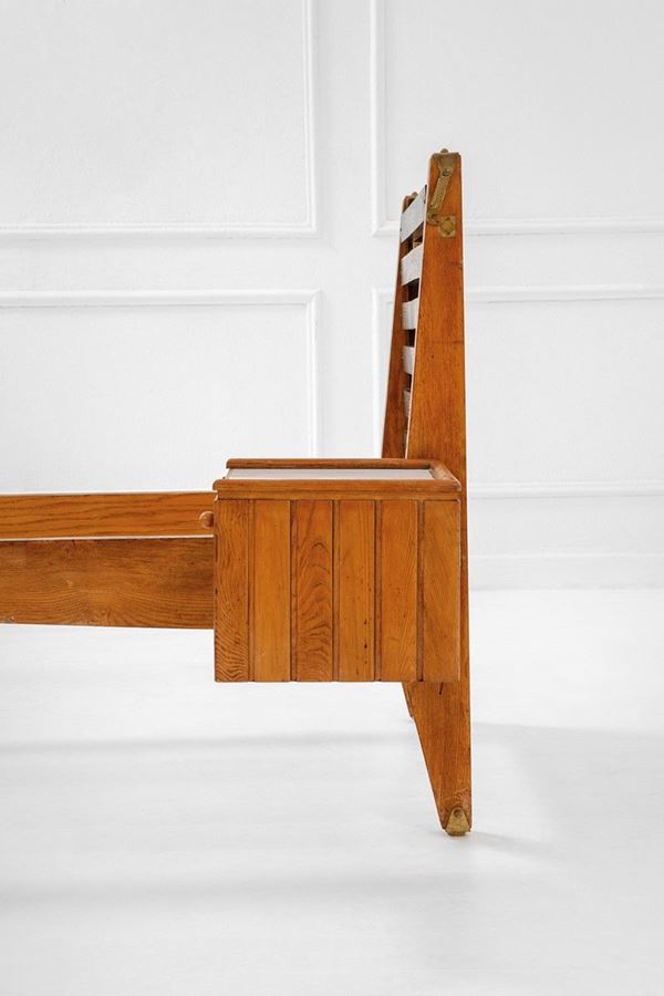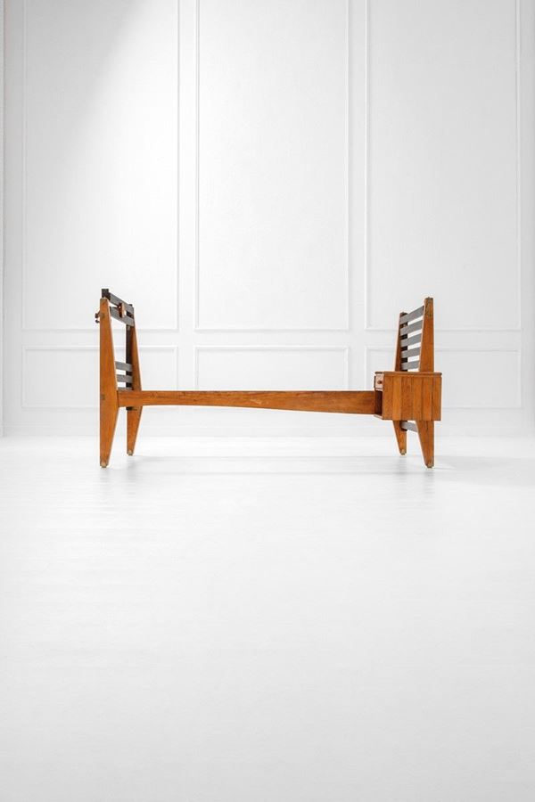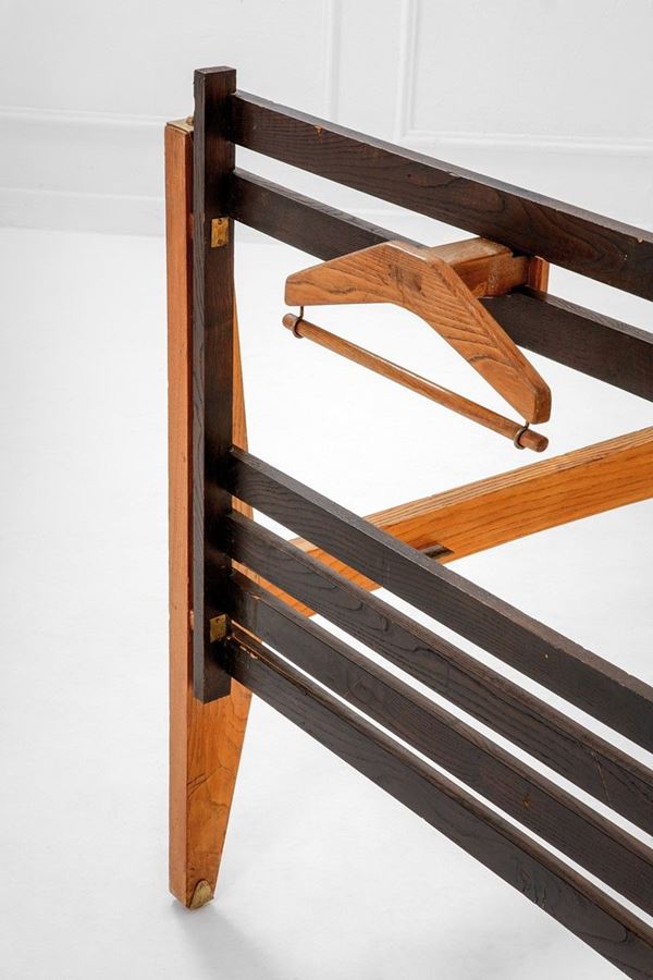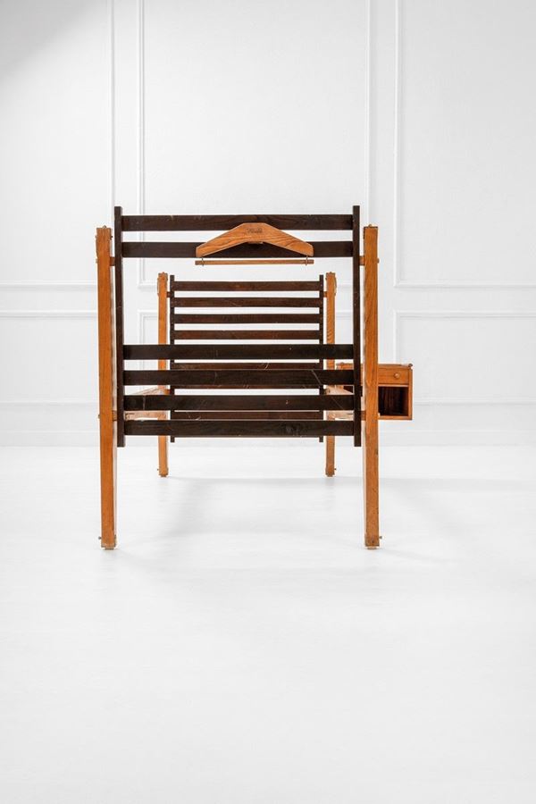Letto con appendiabiti scorrevole e comodino sospeso proveniente dalla Casa del Sole di Cervinia