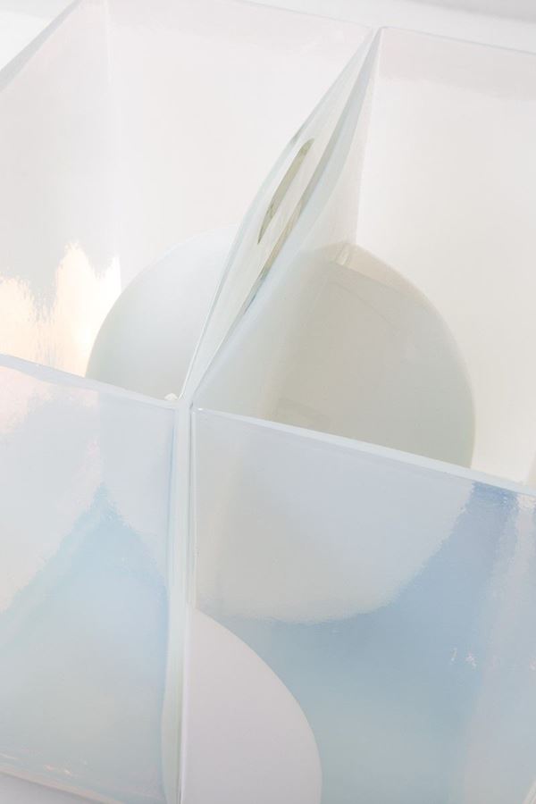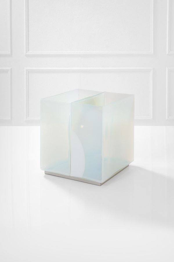 Vetro iridescente stampato, metallo.