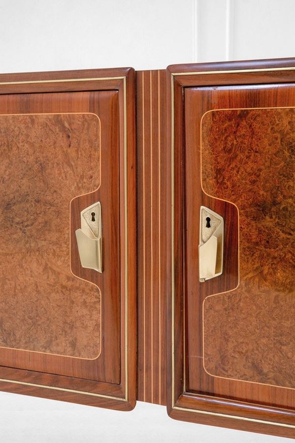 Legno, ottone, metallo smaltato.