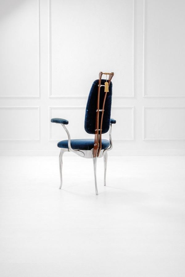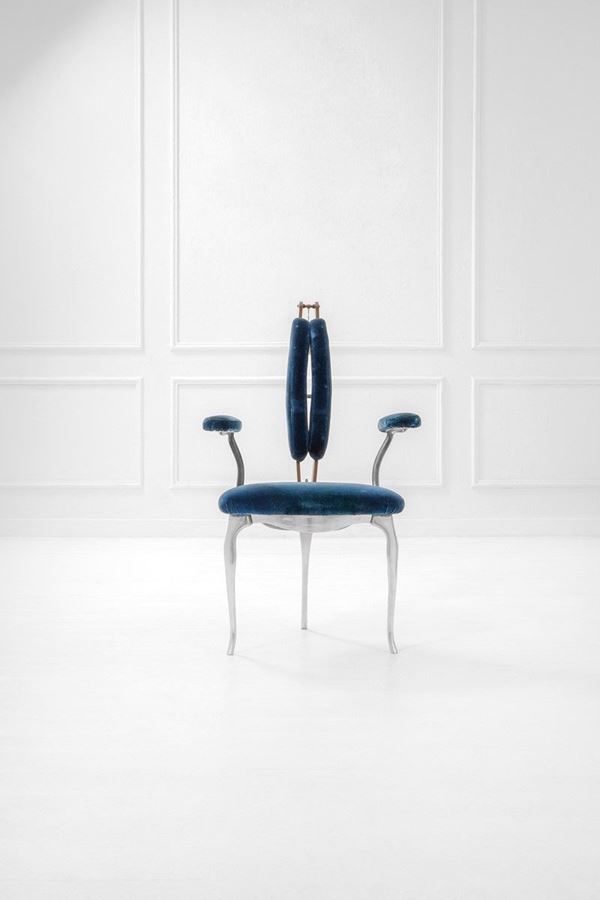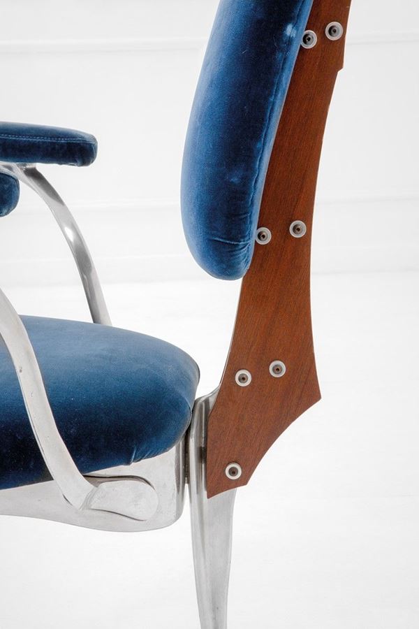 Fusione di alluminio, legno, velluto, ottone.