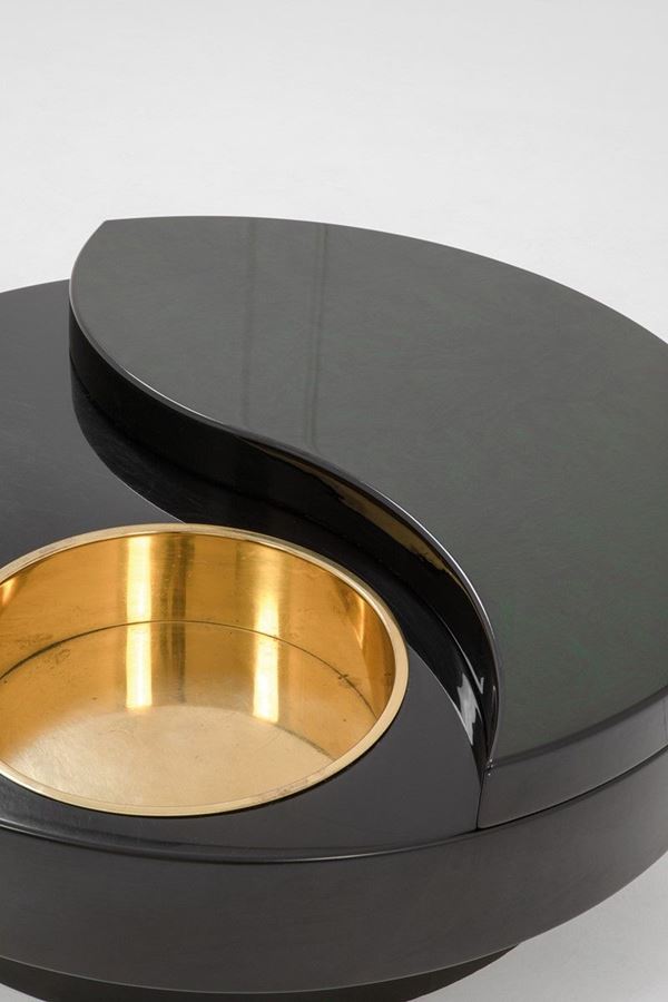 Ottone, legno laccato nelle tinte del nero e malachite.