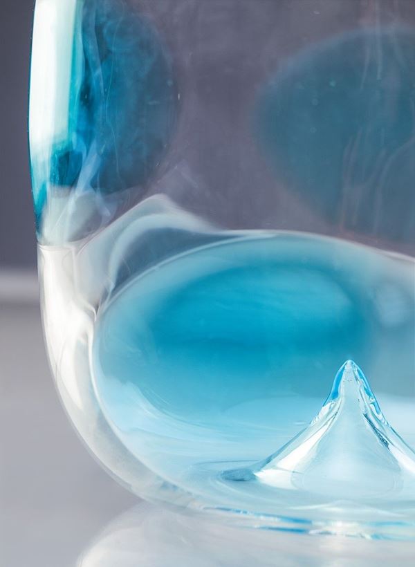 Vetro cristallo con grandi lenti turchesi applicate a caldo.