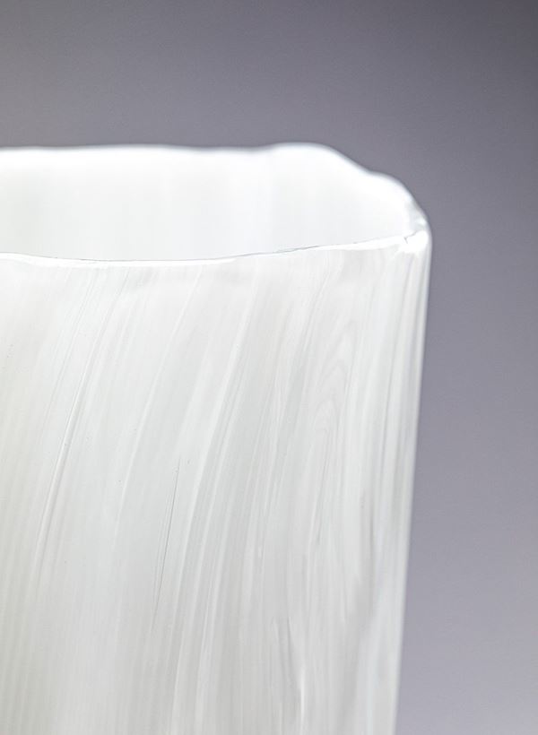 Pasta vitrea di colore bianco lattimo con superficie a rilievi.