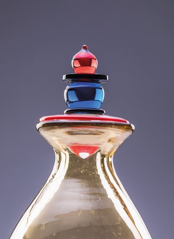 Vetro fumè decorato con filo corallo e tappo gioiello.