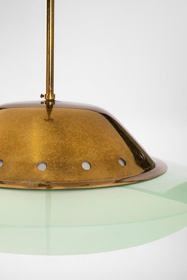 Ottone, vetro curvato molato e vetro curvato satinato.