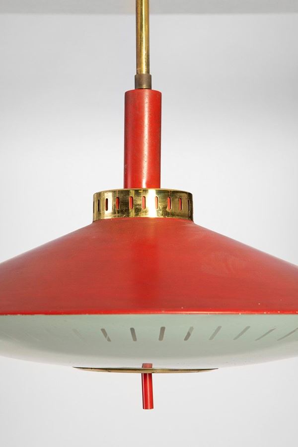 Metallo smaltato, cristallo curvato e molato, ottone.