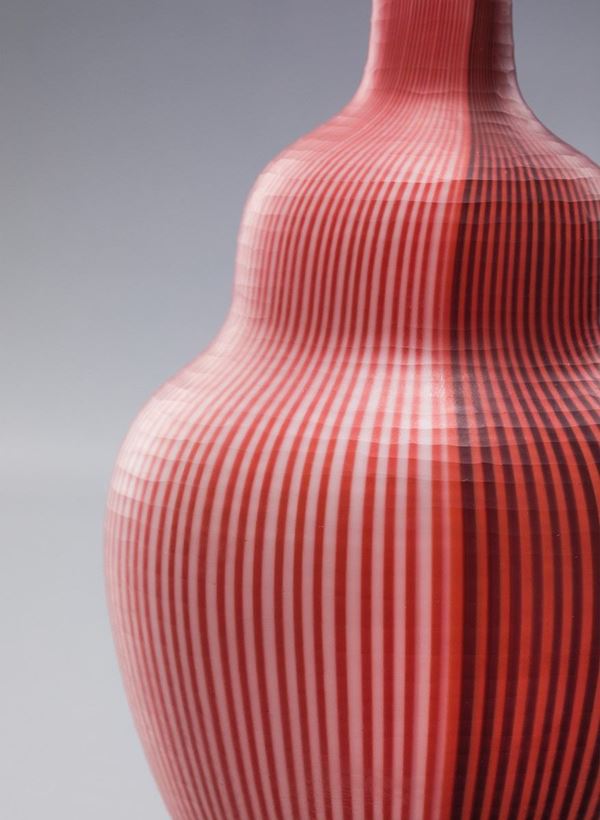 TessutoVetro a nastri di filigrana bicolore e superficie battuta.