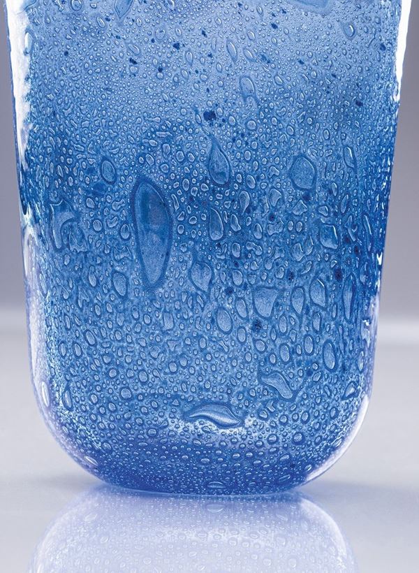 Vetro di colore blu brillante ottenuto con la tecnica della colorazione a caldo senza fusione.