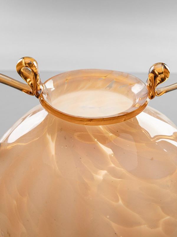 Vetro leggermente marmorizzato con prese laterali applicate a caldo.