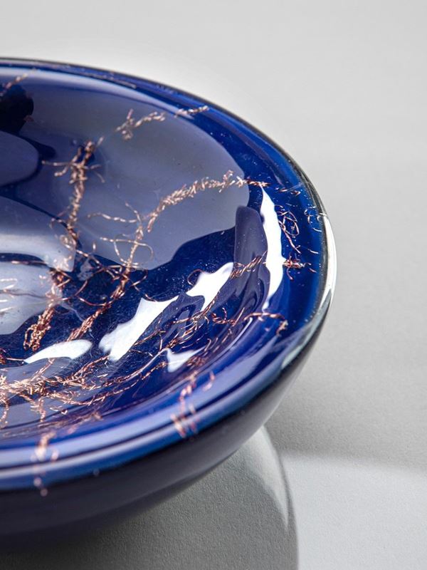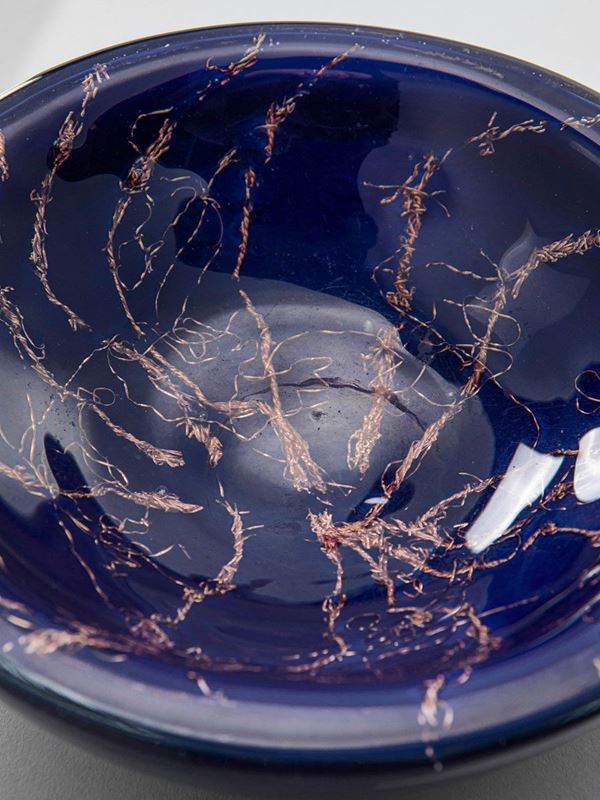 Vetro incamiciato, realizzato con inclusioni di rame su fondo colorato opaco.