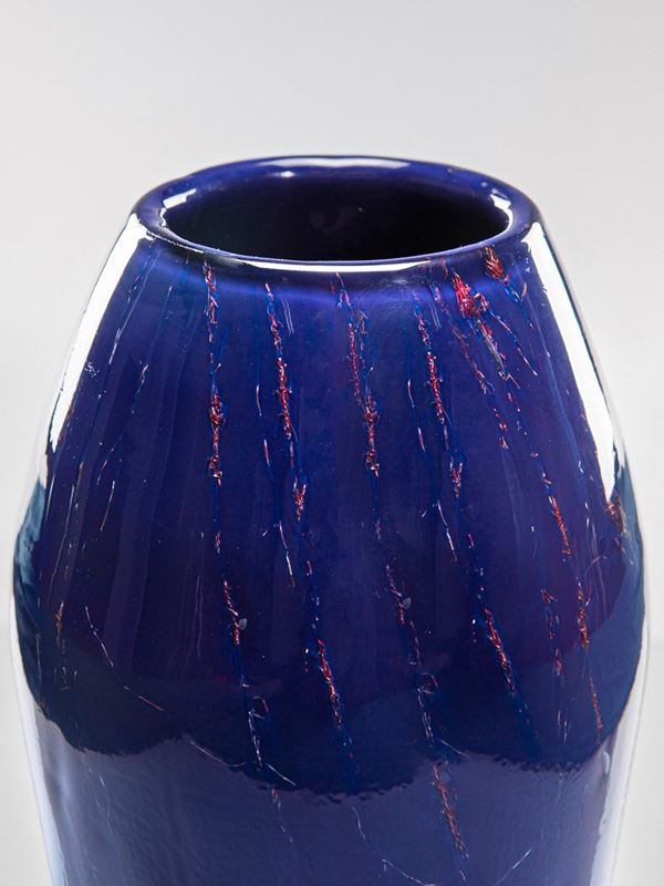 Vetro incamiciato, realizzato con inclusioni di rame su fondo colorato opaco.