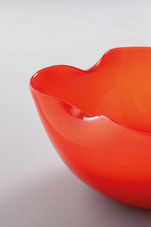 Coppa quadrilobata in vetro rosso corallo