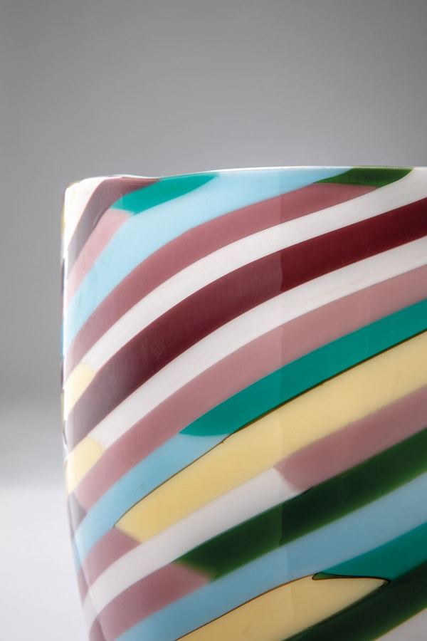 Vetro soffiato a tessere policrome disposte diagonalmente.