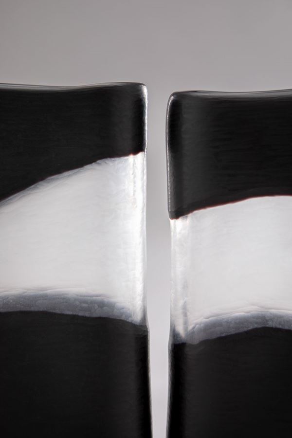 Vetro soffiato a doppio strato, molato, battuto.